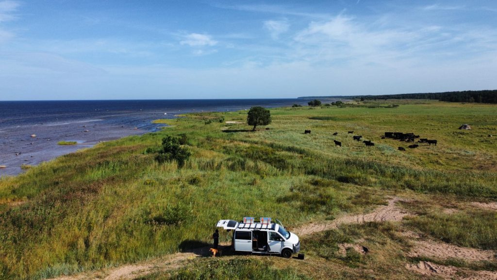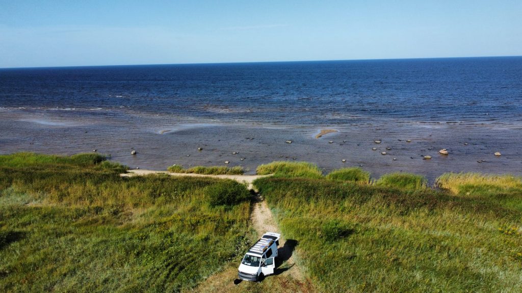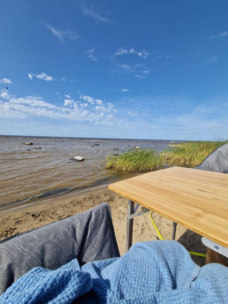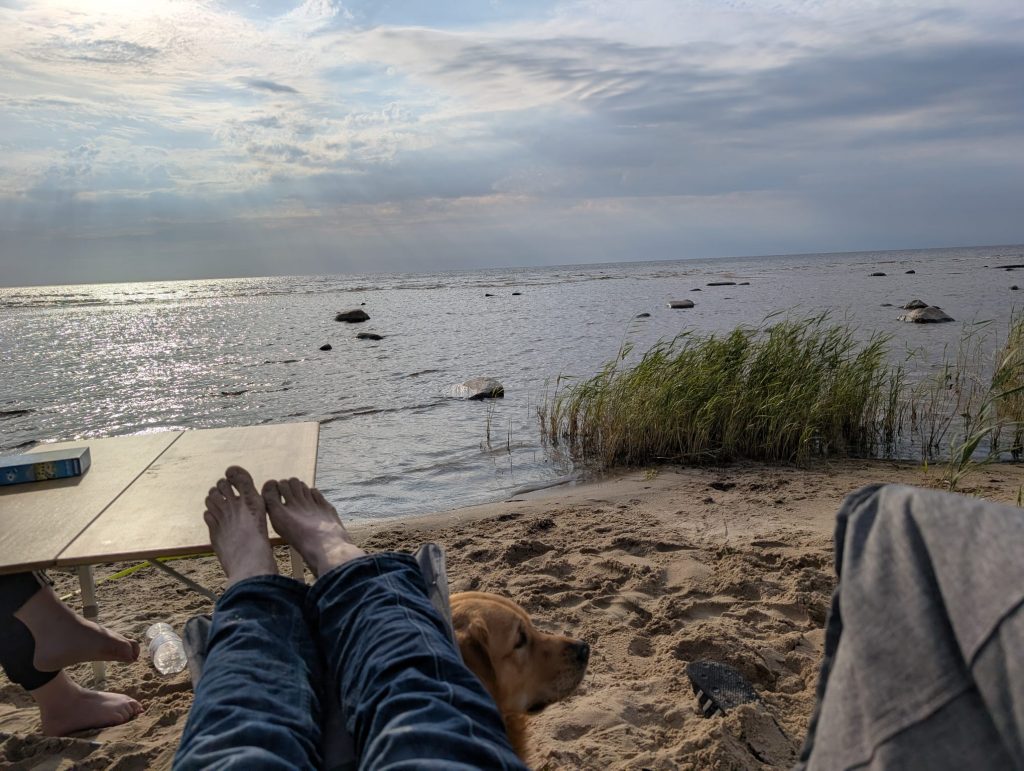 Den zehnten Tag unseres Roadtrips verbrachten wir überhaupt nicht auf der Road, sondern sind an unserem schönen Stellplatz in Metsapoole geblieben. Die Lage direkt an dem kleinen Strandbereich war so perfekt, dass wir uns sowieso nicht verbessern konnten. Außerdem waren wir die meiste Zeit alleine, genau wie wir uns das vorgestellt hatten. Wir verbrachten den Tag also mit spielen, sonnen und baden. So schön das Wetter auch war, es brachte auch Schwierigkeiten mit sich.. Der Wind hatte deutlich aufgefrischt und wirbelte alles durcheinander, was wir so hatten. Ob es unser Spiel, Wasserflaschen oder Svens Unterhosen waren… wieder ist eine Unterhose dem Wind zum Opfer gefallen. Wie schon 2022 in Kroatien, nur dass wir diesmal nicht nur den Wind, sondern evtl auch Nemos Buddelkünste in Verdacht haben. Diese werden nämlich an jedem Strandabschnitt weiter optimiert. Meistens allerdings so nah bei uns, dass einer von unseren Stühlen plötzlich absackt, weil ein klaffendes Loch neben uns entstanden ist. Auch dort könnte also eine Unterhose verschwinden, wir werden es nie erfahren 🤷🏽♀️