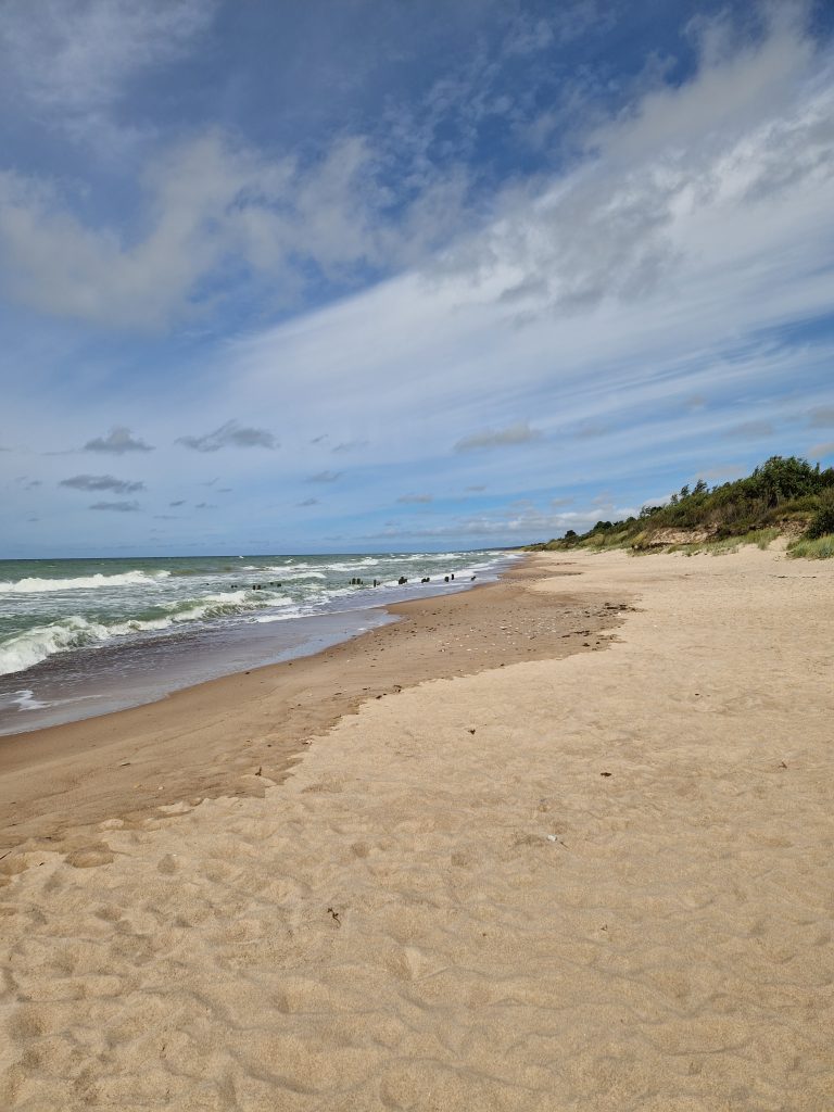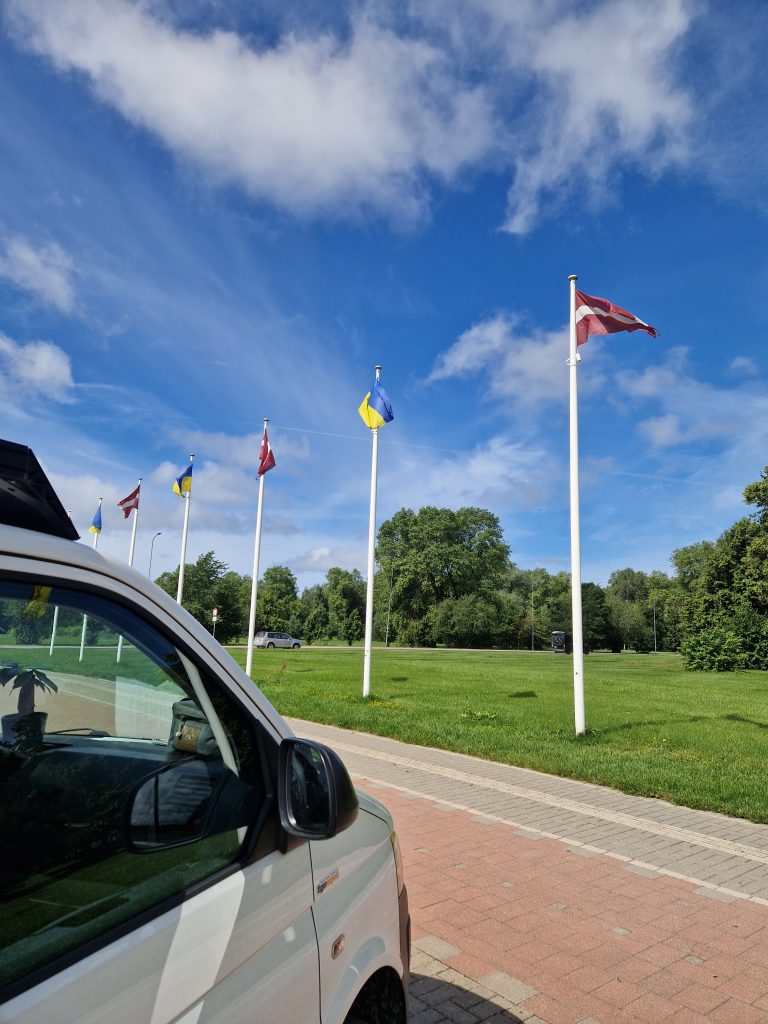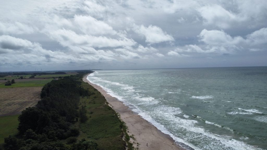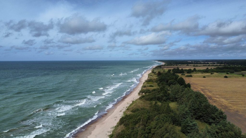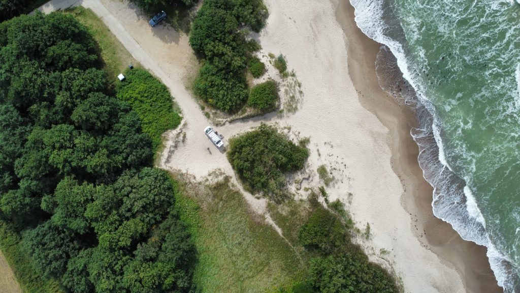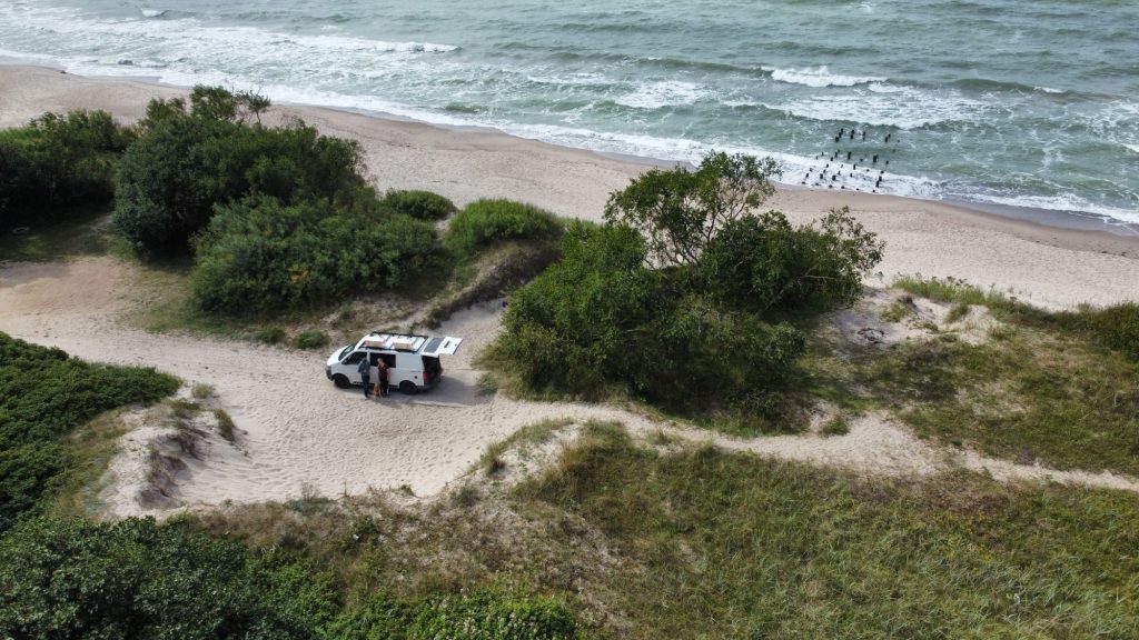 Es ging durch Nīca hindurch (Liebe Grüße an Nemos Uroma Nika an dieser Stelle) und wir feierten das Flaggen-Statement der Letten 🇺🇦🇱🇻 bis wir in der Nähe von Saraiķi einen Stellplatz direkt am Meer ergattern konnten! Wir können aus dem Bus das Meer sehen, haben den Strand fast für uns alleine und können uns kaum verstehen, weil das Meeresrauschen so laut ist. Sven hat direkt seine Drohne ausgepackt und erstmal ein paar Bilder gemacht.