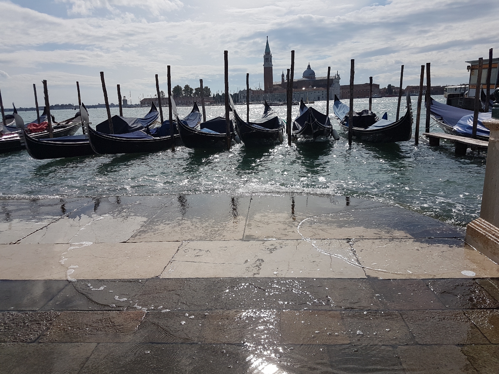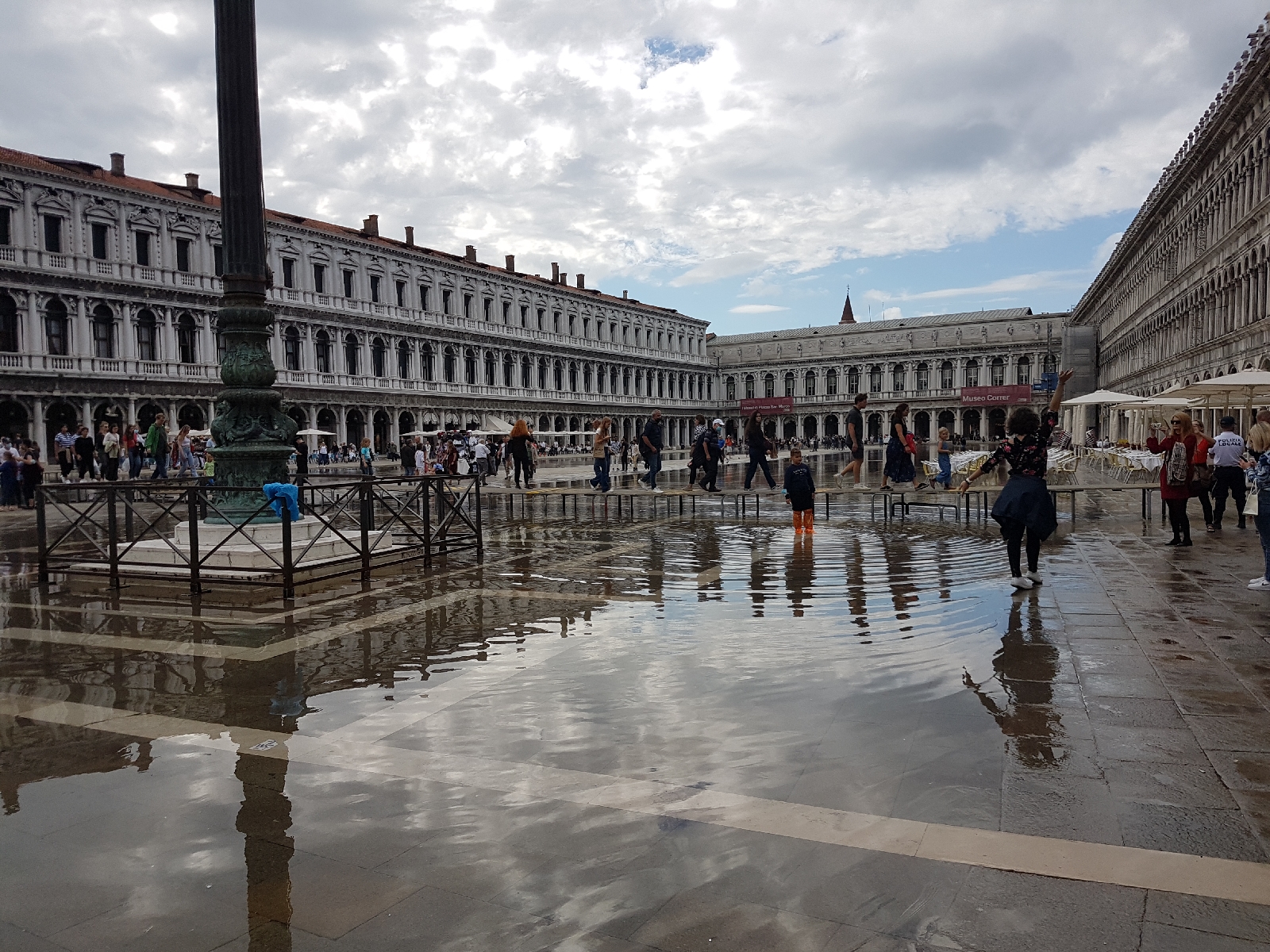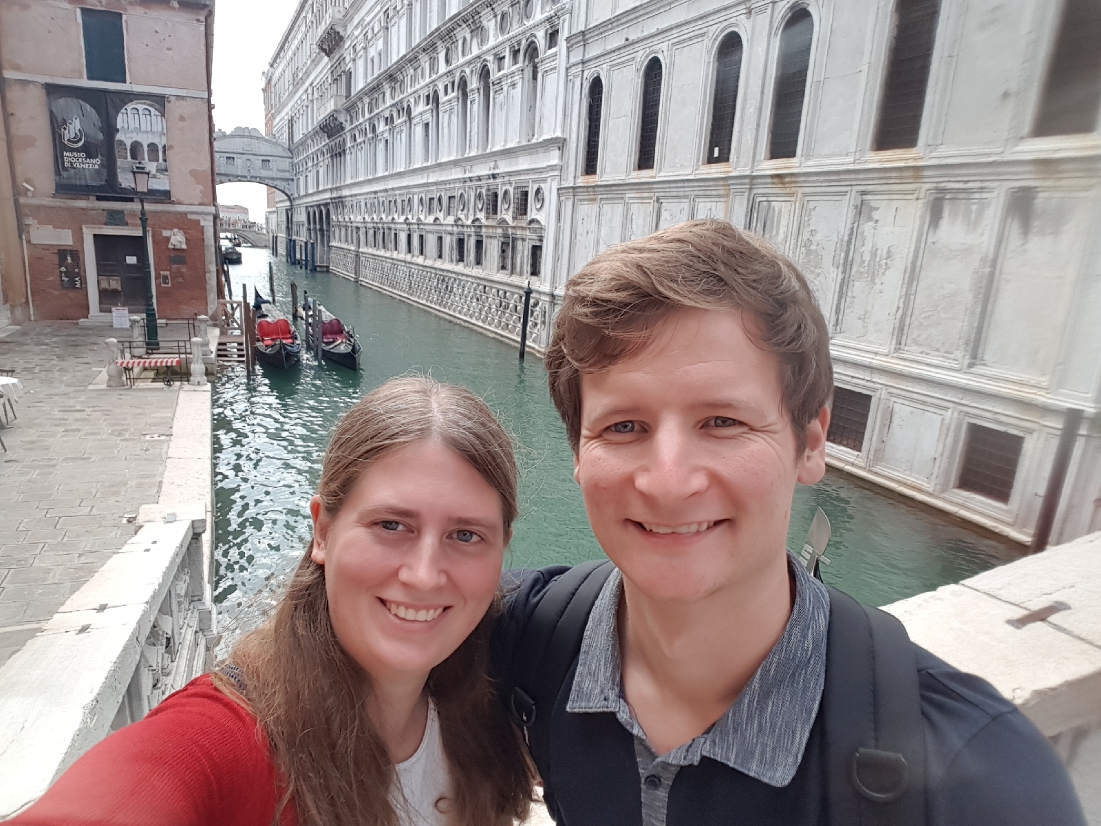 Natürlich schauten wir uns auch die bekannteren Sehenswürdigkeiten der Stadt an. Auf dem Markusplatz stand einiges an Wasser, sodass die Touristen über eine provisorische Brücke geleitet wurden, damit es keine nassen Füße gab. Wir schauten uns den Markusdom nur von außen an. In solchen Punkten sind wir uns immer einig 😁