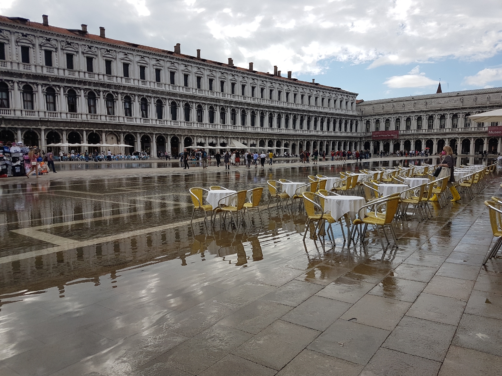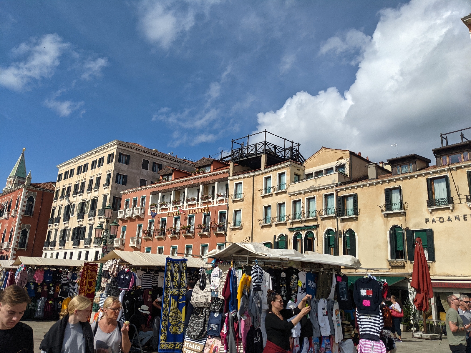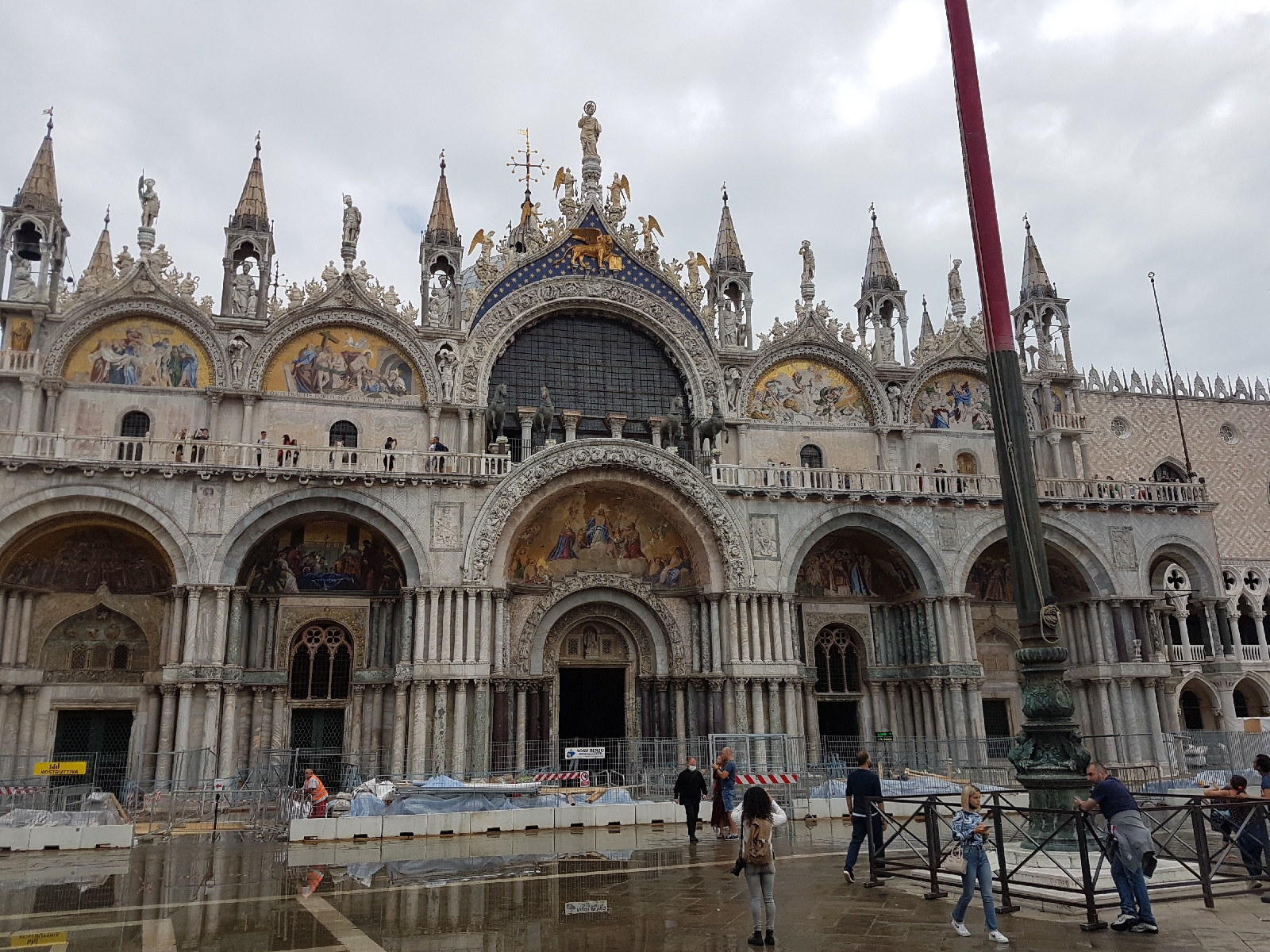 Natürlich schauten wir uns auch die bekannteren Sehenswürdigkeiten der Stadt an. Auf dem Markusplatz stand einiges an Wasser, sodass die Touristen über eine provisorische Brücke geleitet wurden, damit es keine nassen Füße gab. Wir schauten uns den Markusdom nur von außen an. In solchen Punkten sind wir uns immer einig 😁