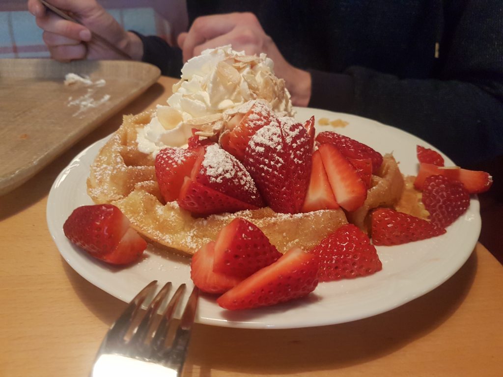 Um halb 7 haben wir auf dem Rastplatz Eben ein ordentlich Abendessen gegessen. Der Nachtisch war richtig gut!