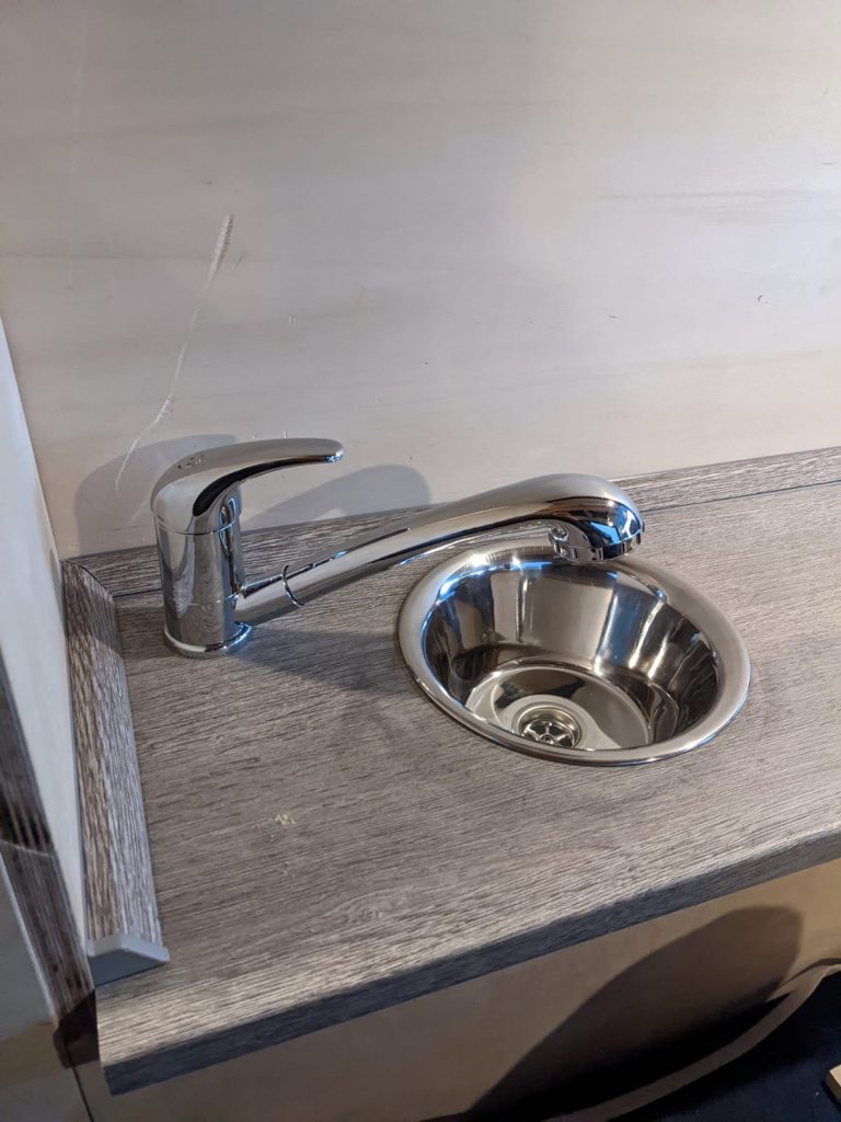 Da es (wie bereits die ganze Woche) selbstverständlich regnete, war ich ganz begeistert, heute Basti nicht mehr verlassen zu müssen. Wir haben schließlich Wasser, können also drinnen Zähneputzen! Ein wahrer Luxus! Ich krabbelte also über die Sitze in den hinteren Bereich und holte erwartungsvoll Zahnbürste und Zahnpasta hervor. Sven war schon ganz aufgeregt, da dies die Generalprobe für die Wasserzufuhr werden würde. Wie bereits gesagt, der Wasserhahn war erst seit Mittwochabend eingebaut, die Pumpe im trockenen Zustand zwar ausprobiert, aber den Tank mit dem Frischwasser hatten wir erst beim Einladen eingesetzt. Der große Moment war also gekommen! Sven öffnete den Wasserhahn und es passierte…. nichts! Kein Wasser! 🤷♀️ Man könnte zwar Geräusche hören, die Pumpe war aktiv, aber Wasser kam hier oben noch nicht an. Achtung, jetzt kommt der Satz des Tages! „Die Leitung muss sich erstmal füllen“, sagte Sven voller Hoffnung. Wir warteten also noch einen kurzen Moment, doch dann machte Sven den Wasserhahn lieber wieder aus. Irgendetwas war da wohl nicht so ganz in Ordnung. Er öffnete die Arbeitsplatte, schaute sich alles nochmal genau an und seufzte dann nur. Es kam durchaus Wasser! Allerdings kam es nicht bei uns oben an, sondern lief wieder nach unten. Es verging eine gewisse Zeit, bis der Fehler gefunden war (irgendetwas mit der Warmwasserzufuhr) und dann die Ernüchterung.. trotz Notfallwerkzeug an Bord, brauchen wir einen Besuch im Baumarkt. Da es draußen immer noch regnete und stürmte, mussten wir improvisieren, denn einen Fuß nach draußen setzen, wollten wir (ich 😇) nur im Notfall. Wenn man an einer bestimmten Stelle den Wasserfluss stoppte, kam aus dem Schlauch an der richtigen Stelle Wasser heraus. „Mach mal ein ganz bisschen Wasser an“, schlug ich also vor. Sven tat wie ihm geheißen und ein fester Wasserstrahl spritzte in die Schüssel. Regulierung des Wasserdrucks ohne Wasserhahn ist wohl schwierig. Das Bett (Svens Seite 🤣), Arbeitsplatte, T-Shirt und Hose waren nass. Wir konnten es zum Glück mit Humor nehmen! Genug Wasser zum Zähneputzen war dann auch da, sodass wir nicht im Regen draußen stehen mussten. Inzwischen war es ungefähr 1 Uhr nachts und wir gingen dann schnell schlafen. Zu Weihnachten gab es Thermomatten, die wir an der Frontscheibe und den vorderen Fenstern anbringen können, sodass zumindest die hellen Laternen vom Rastplatz nicht störten.
