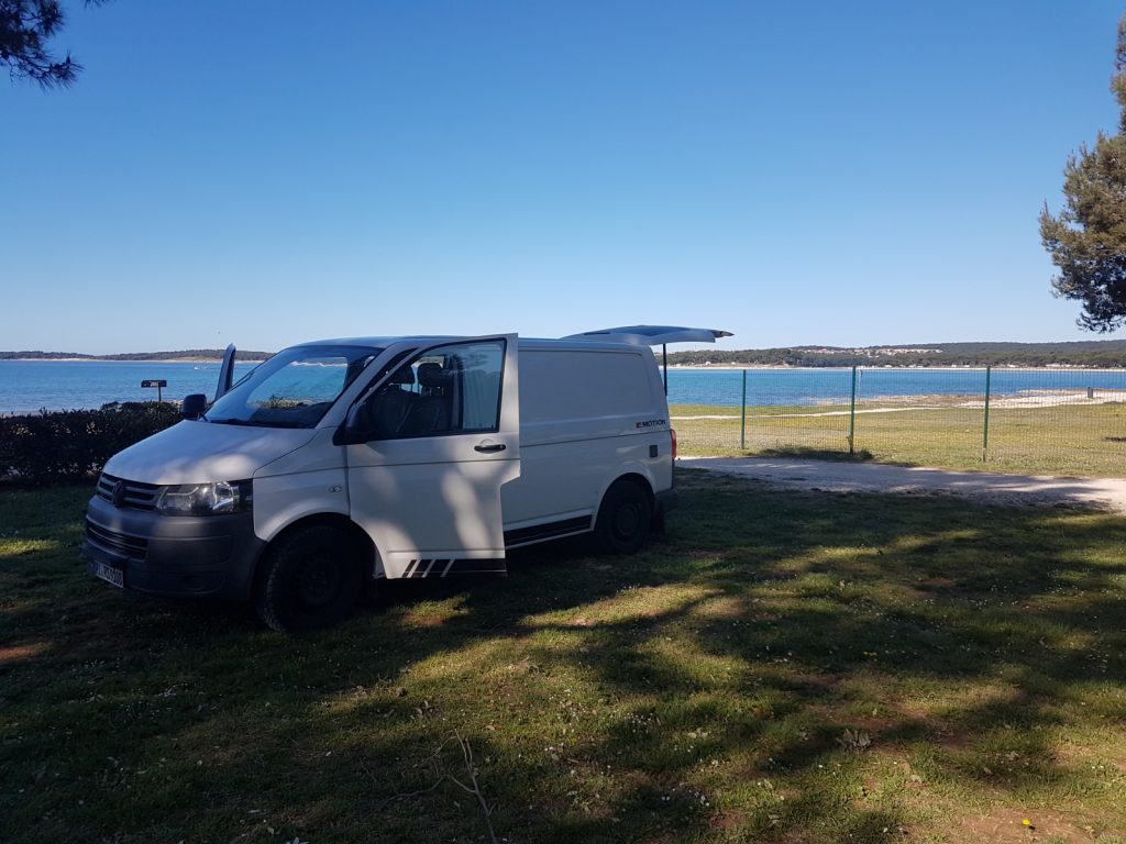Leider hatte sich das Wetter so zugezogen, sodass wir den erhofften Sonnenuntergang nicht sehen konnten. Trotzdem konnten wir die Nacht endlich mal wieder richtig gut schlafen und sind heute morgen mit neuer Energie aufgewacht. Basti hat die stürmische Nacht unter den Bäumen auch gut überstanden und so haben wir uns heute Morgen zur Abfahrt bereit gemacht. Nachdem wir wieder alles sicher verstaut hatten, Frischwasser aufgefüllt und Abwasser entleert hatten, machten wir uns gegen 10 Uhr auf den Weg Richtung Rijeka.