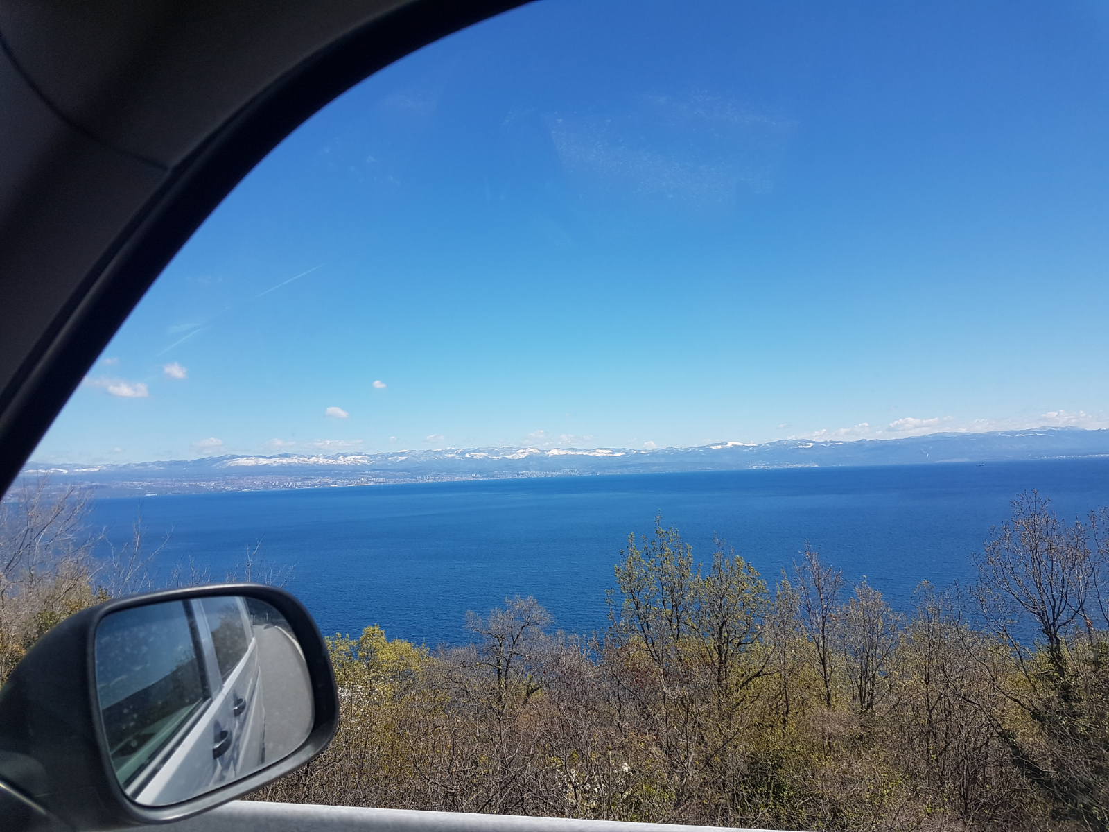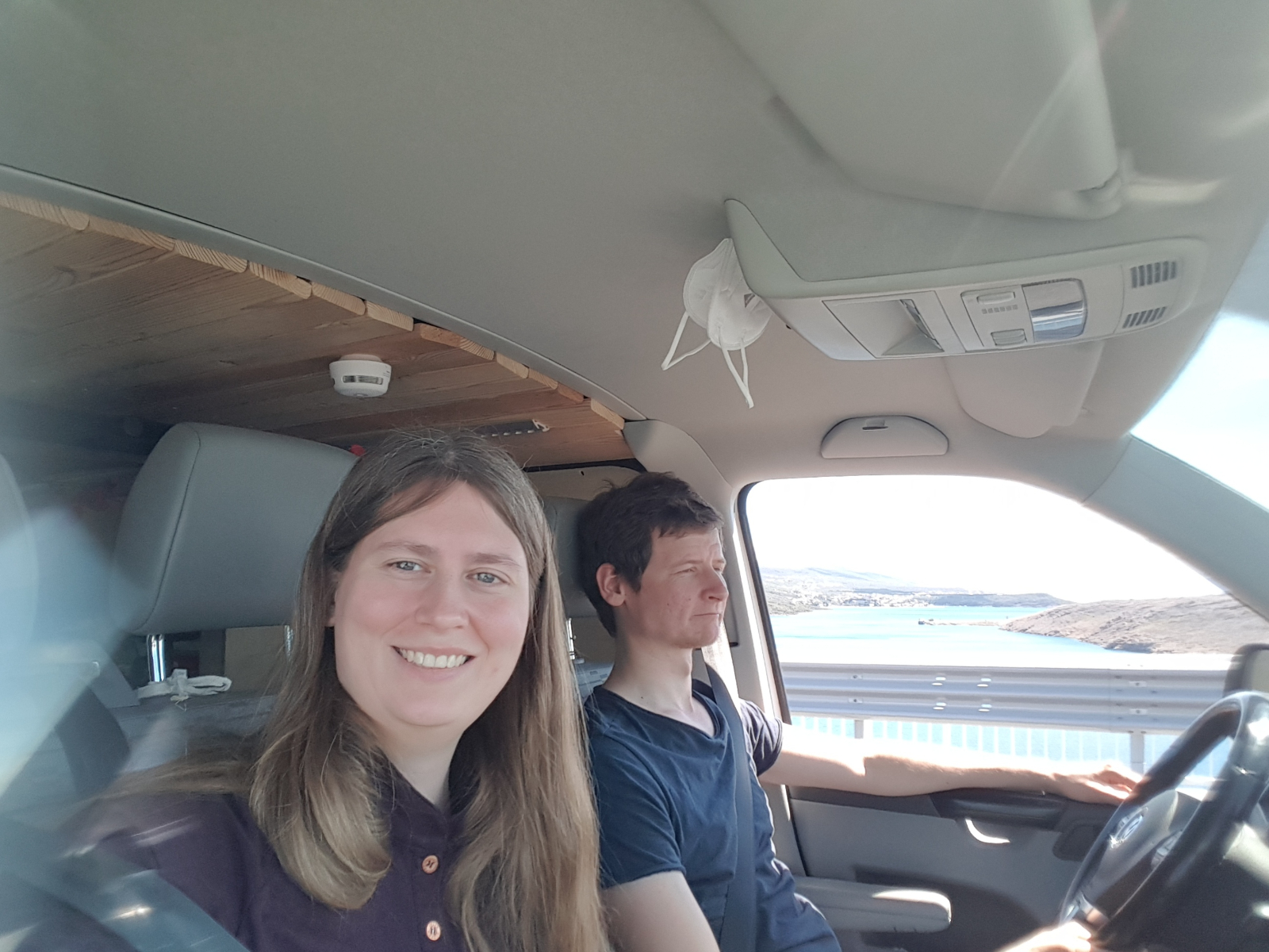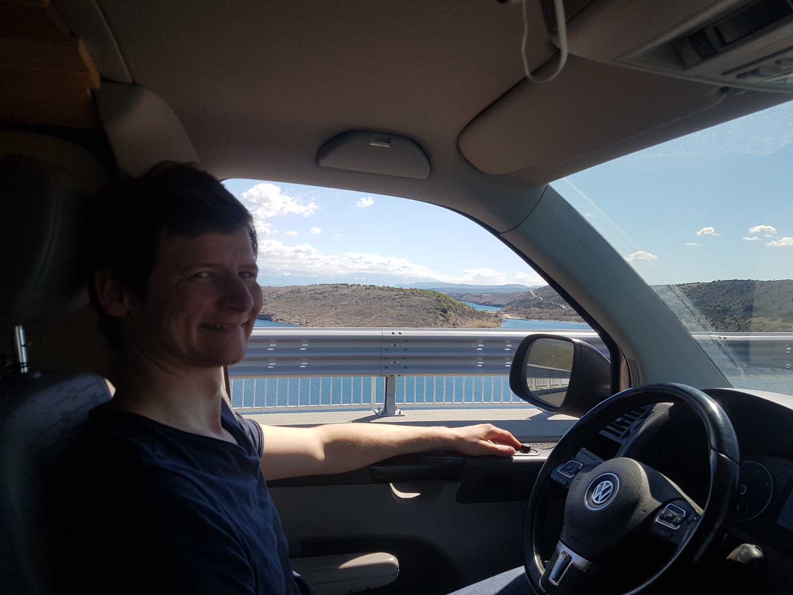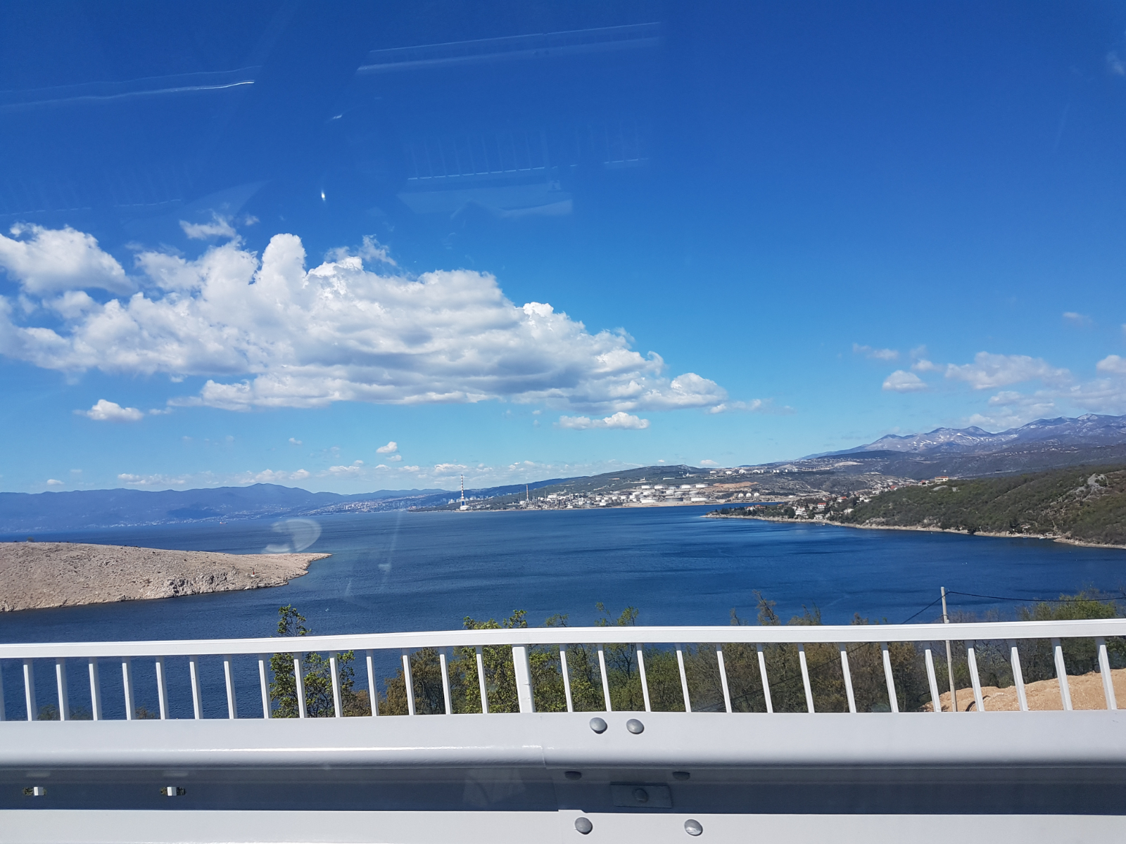 So schön die Fahrt an der Küste entlang auch war, so wenig sprach uns die Stadt Rejika an. Es war eine sehr große Stadt, die weniger Altstadt- als Großstadtfeeling ausgestrahlt hat. Obwohl wir uns eigentlich vorgenommen hatten, dort den ersten Stop des heutigen Tages zu machen, entschieden wir uns spontan dagegen. Wir verlängerten unsere Tour bis zur Insel Krk. Dank der Naschitüte von gestern hielten wir die Fahrt auch ohne den geplanten Frühstücksstopp in Rijeka durch. 😇 Gegen 13 Uhr fuhren wir über die fast 1,5km lange Brücke nach Krk.