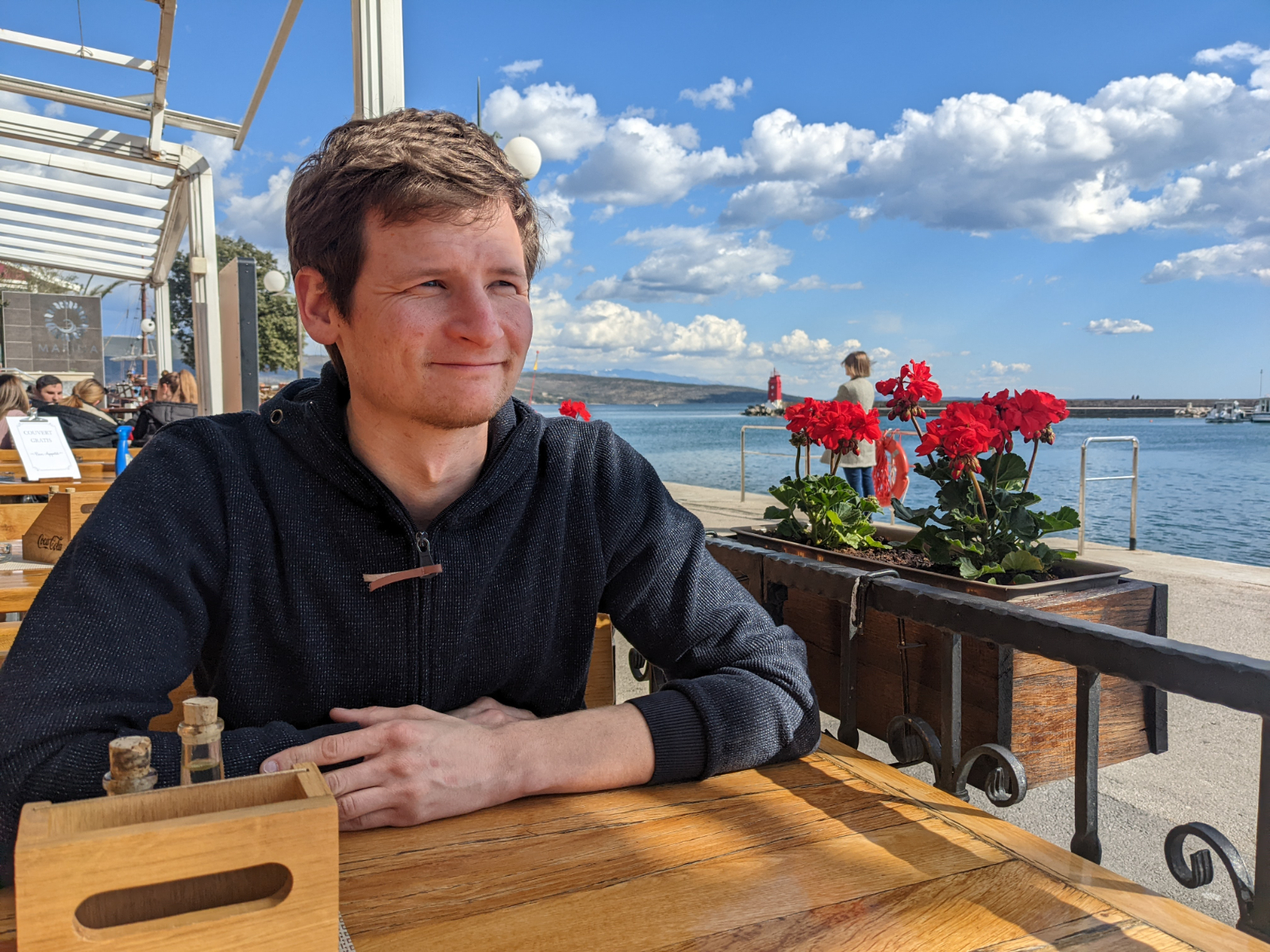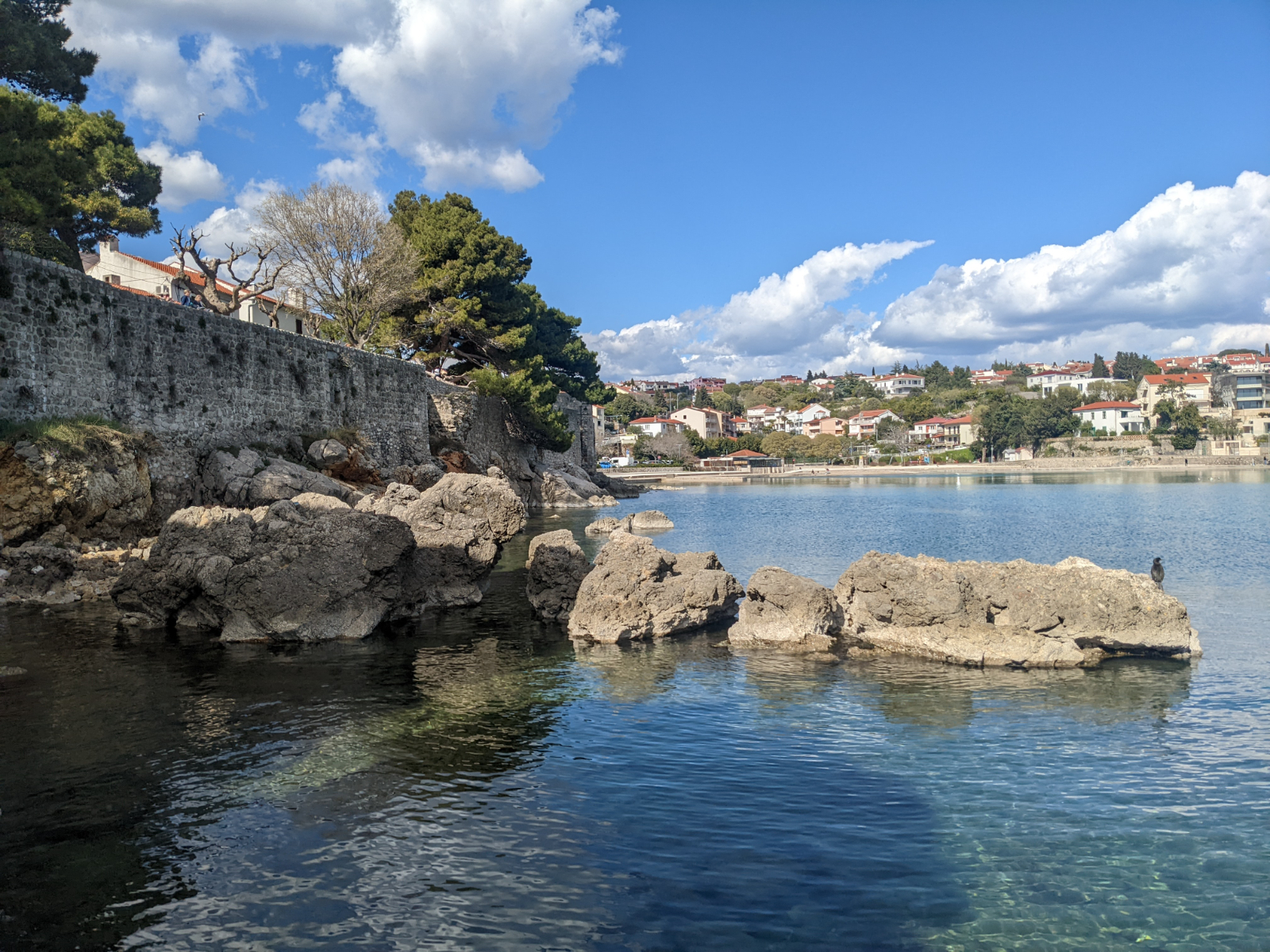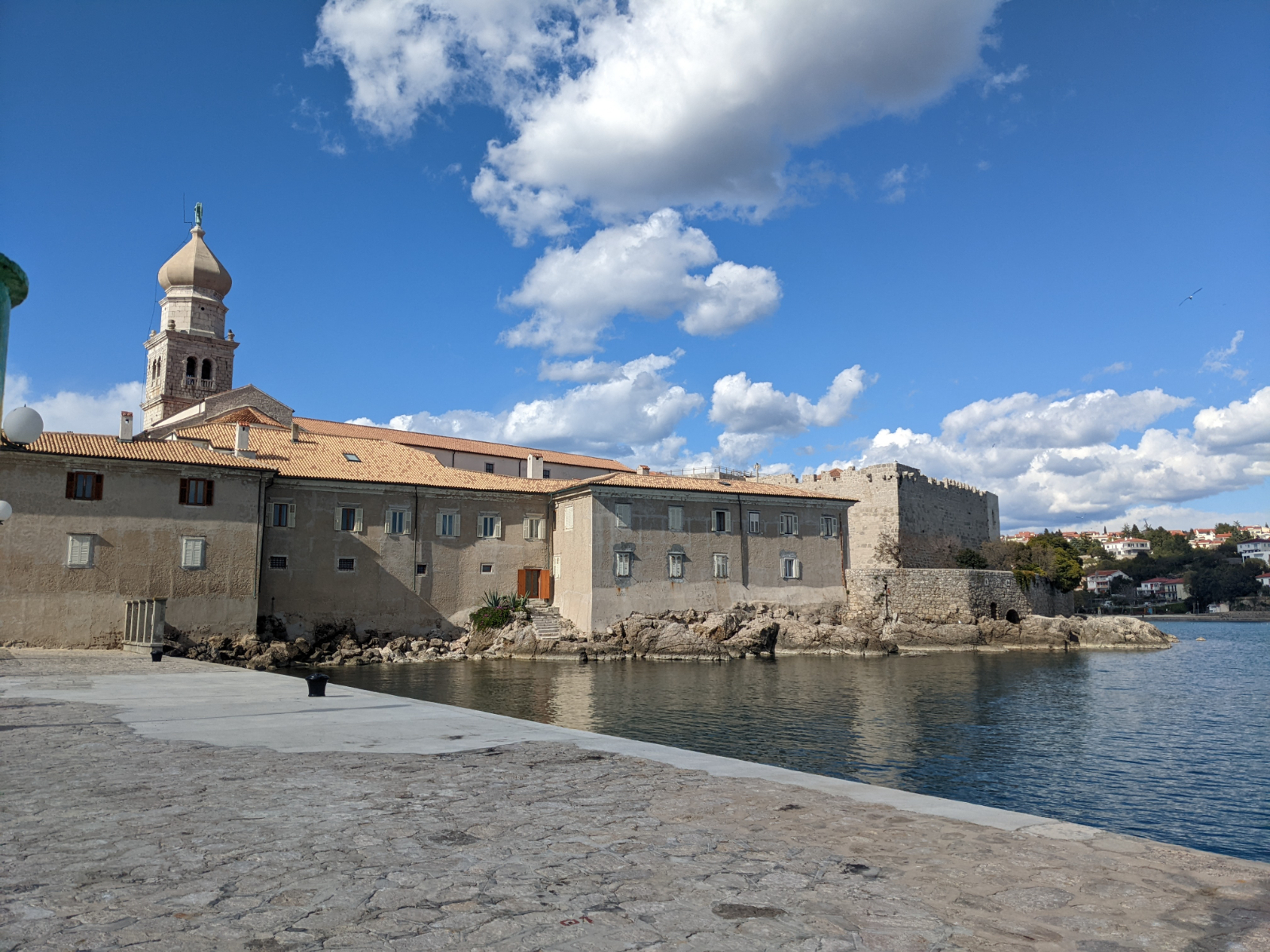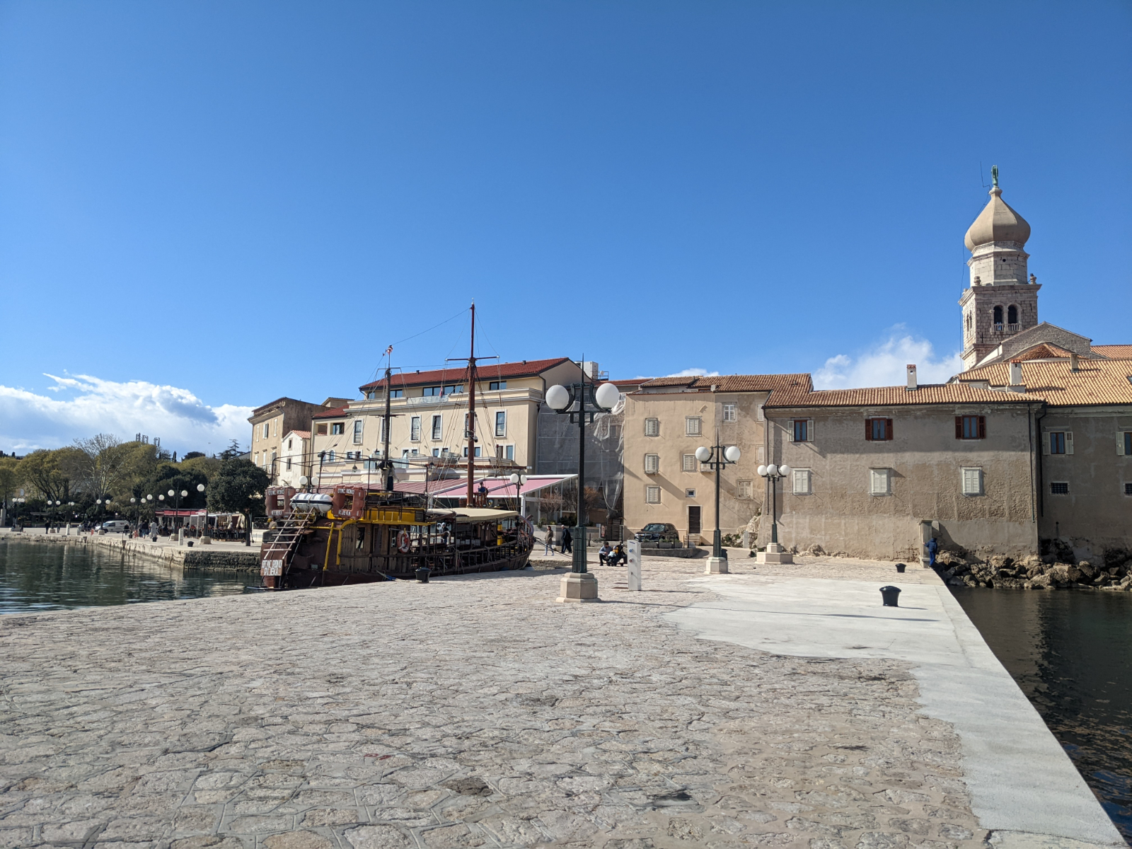 Ungefähr um 15 Uhr sind wir dann in die „Hauptstadt“ Krk gefahren. Wie so viele malerische (Grüße an Luki und Lenni 🤗), kleine, alte Städtchen liegt auch Krk mit seinem schönen Hafen direkt am Wasser. Wir liefen durch die schöne Altstadt und genossen den Blick auf das unfassbar klare Meer. Man kann überall bis auf den Grund schauen! Das Wasser sieht so freundlich aus als wäre es eine Wohltat, direkt hinein zu springen. Mein Zeh sagt allerdings, dass das eine Falle ist! Egal wie verlockend es aussieht, es ist immer unfassbar kalt! Nach einiger Zeit aßen wir gemütlich mit Meerblick zu Abend, wir gönnten uns heute ein Pizza und genehmigten uns als Nachtisch noch ein Eis. Nachtisch geht schließlich immer!