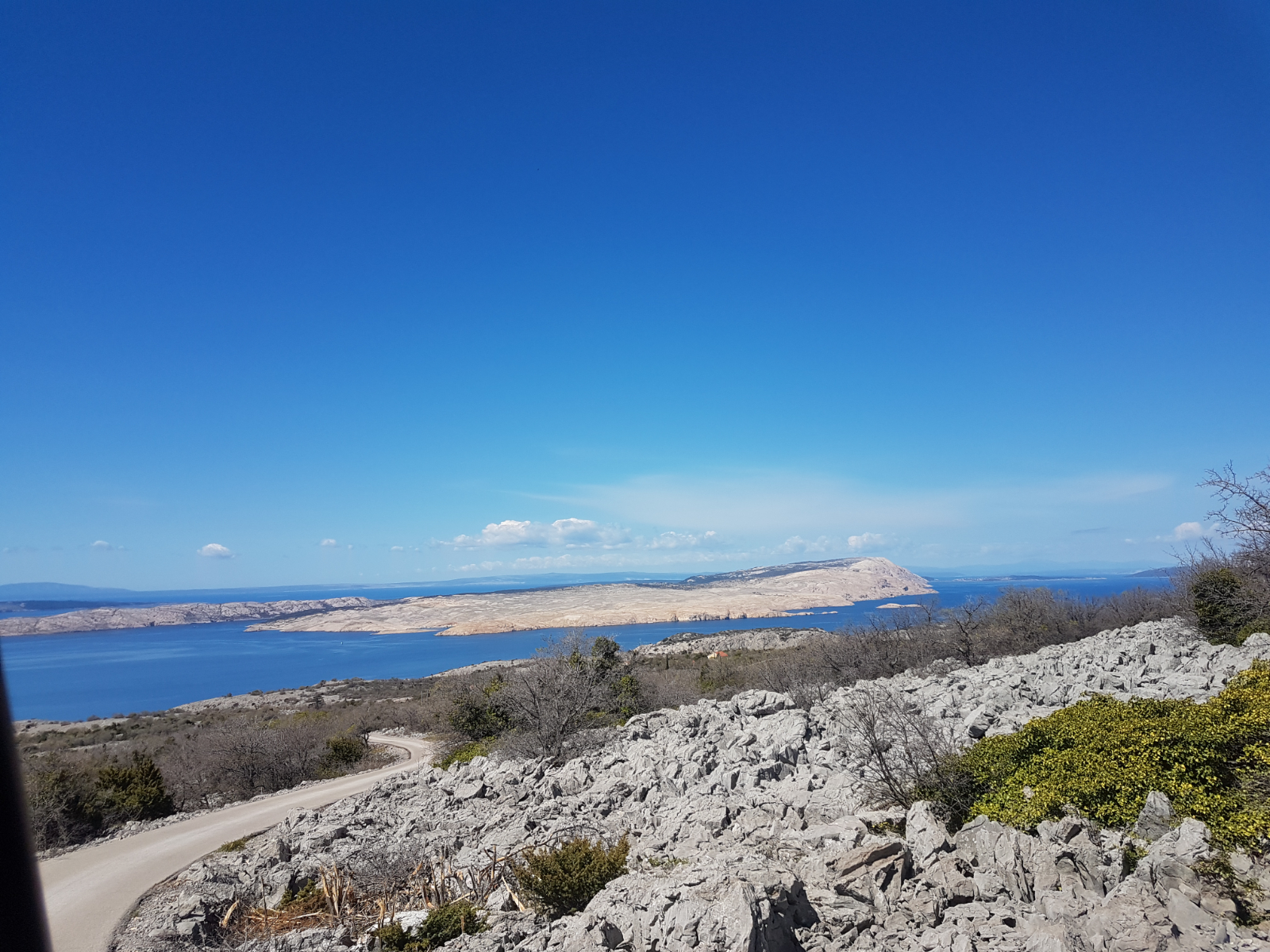 Dies war der erste Moment, wo wir die Insel Rab im Tageslicht sahen. Während Rab auf der Nordseite von viel Wald bedeckt ist, wurde die Landschaft immer karger, je weiter wir nach Süden fuhren. Die Landschaft war schroff, felsig und nicht sehr einladend. Im Süden der Insel erreichten wir dann die Fähre, die uns wieder aufs Festland bringen sollte.