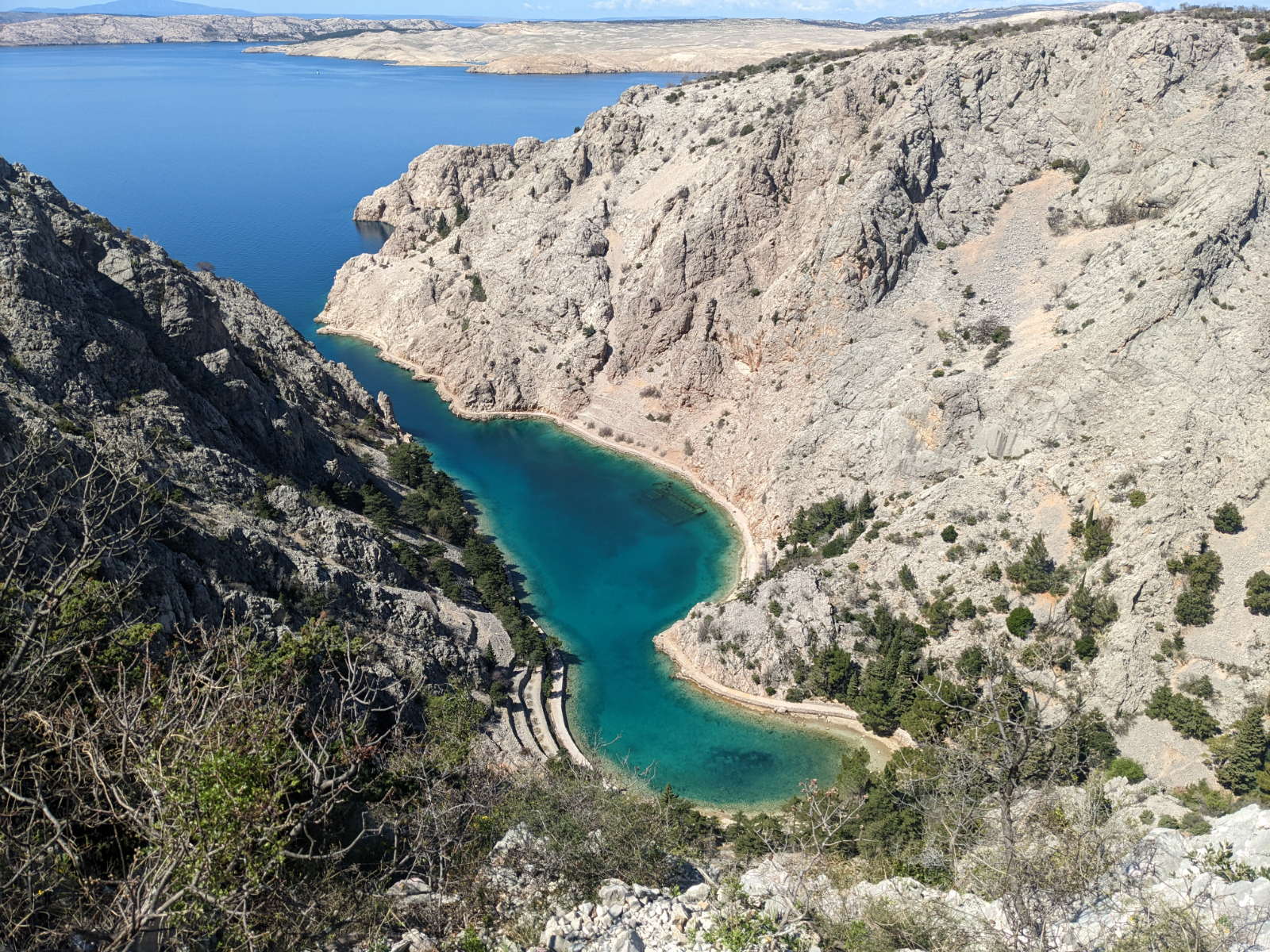Um 11 Uhr machten wir uns dann weiter Richtung Süden. Das erste Ziel war die Bucht Zavratnica, die einen tollen Ausblick bieten soll. Schöne Ausblicke sind wir inzwischen schon fast gewohnt. Sobald man ein kleines Stück die Berge hochfährt, hat man die wunderschöne Küste mit dem klaren Wasser im Blick.