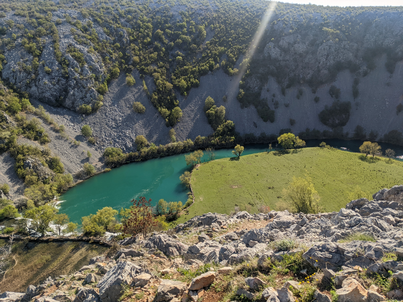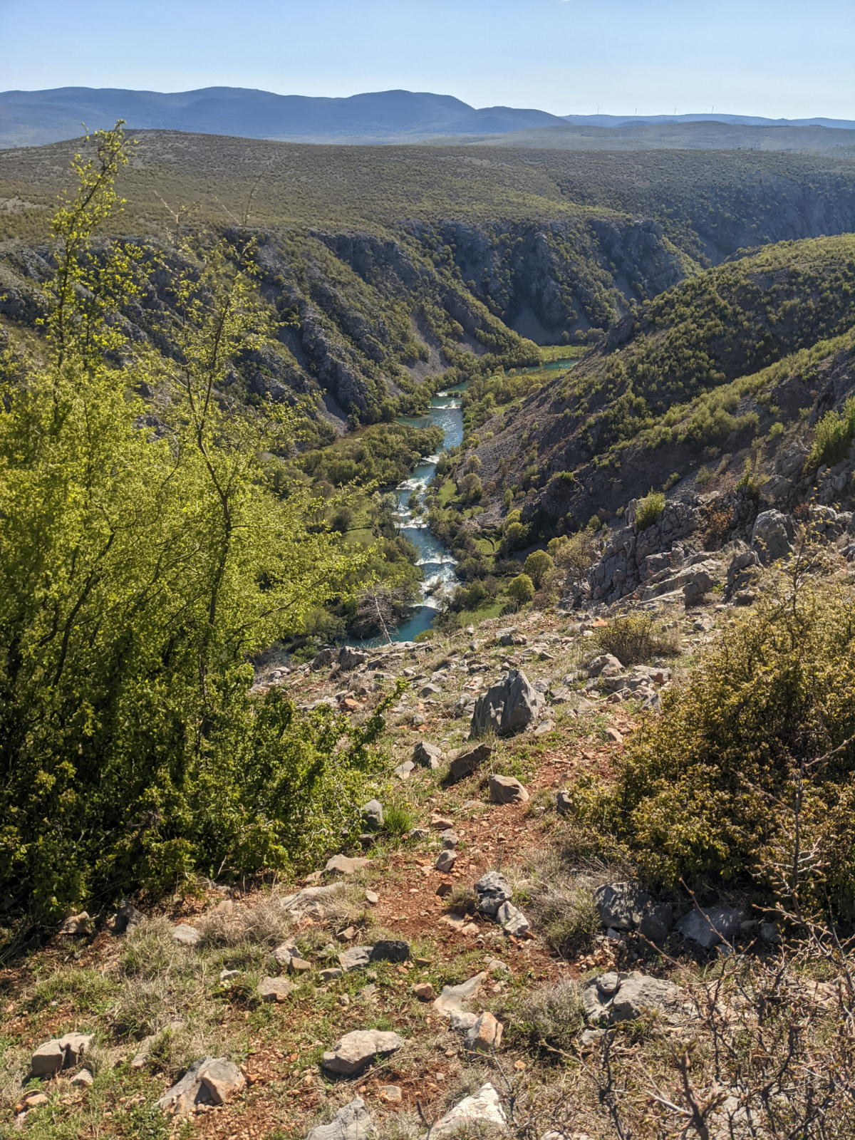 Nach dem recht kurzen Stopp am Aussichtspunkt wartete eine längere Fahrt auf uns. Wir wollten zu der besonders schönen Schlucht Kudin Most, die etwas weiter im Landesinneren liegt. Die Fahrt verging Dank Eragon trotzdem recht schnell. Auch auf dem Festland blieb die Landschaft allerdings recht monoton, karg und felsig. Teilweise kamen wir uns recht einsam vor. Die Schlucht bot aber einen weiteren schönen Ausblick!