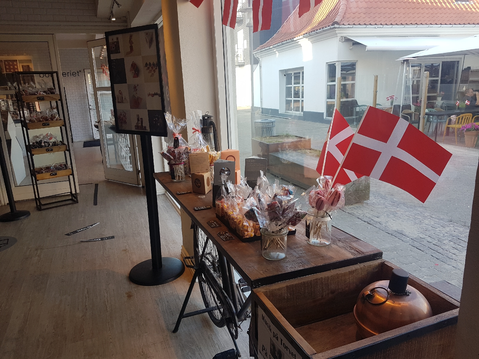 Hier müssen wir das erste Mal unsere Corona-Impfung nachweisen. Die erste Hürde ist geschafft. 🇩🇰 Nun geht die Fahrt weiter bis in den Norden Dänemarks – Hirtshals ist unser Ziel. Dort wollen wir die Fähre nach Norwegen nehmen. Mit jedem Kilometer schreitet die Zeit weiter voran und uns wird klar, dass wir wohl eine Nacht in Dänemark verbringen werden. Diese Entscheidung lässt uns den Tag noch mehr genießen und wir beschließen, eine Pause in Løkken zu machen. Hier kommen alte Kindheitserinnerungen beim Besuch der Bolcheriet hoch – natürlich gehen wir nicht mit leeren Händen aus der Bonbonmanufaktur! 🤩
