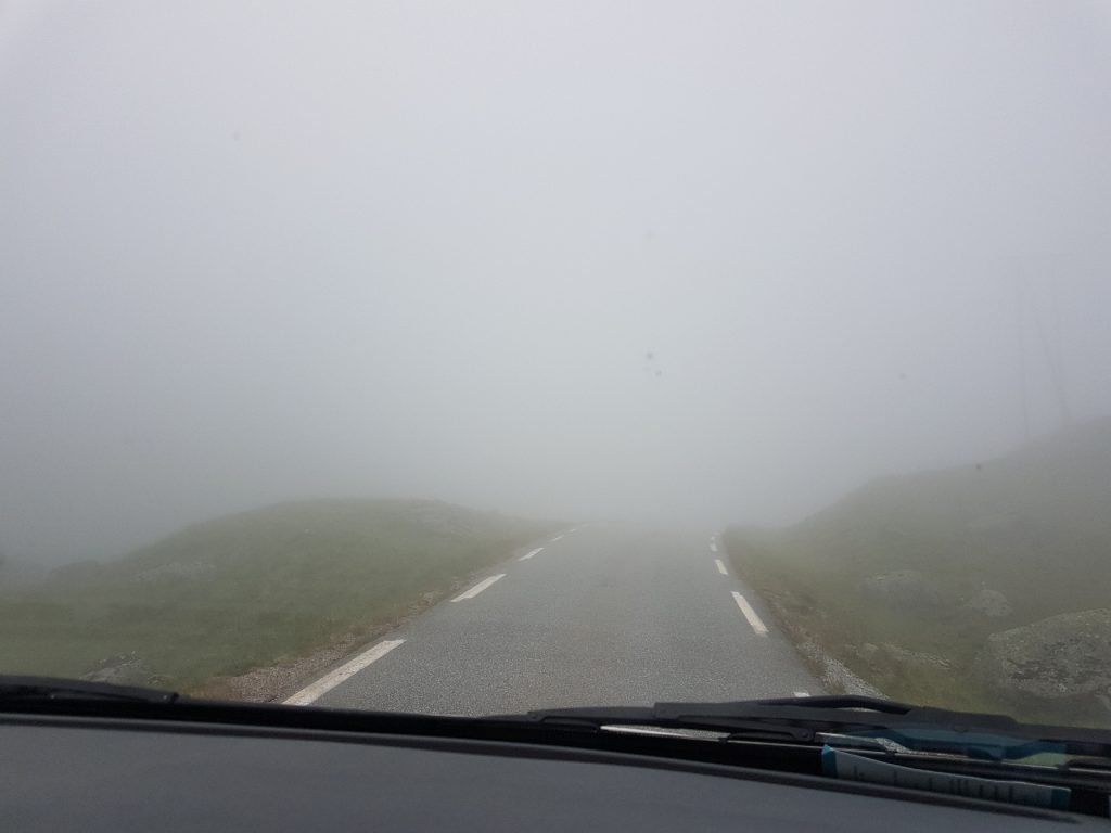 Je weiter wir nach oben kamen, desto kurviger wurde die Straße, eine Haarnadelkurve nach der anderen. Außerdem stieg plötzlich heftiger Nebel auf. Es war abenteuerlich!