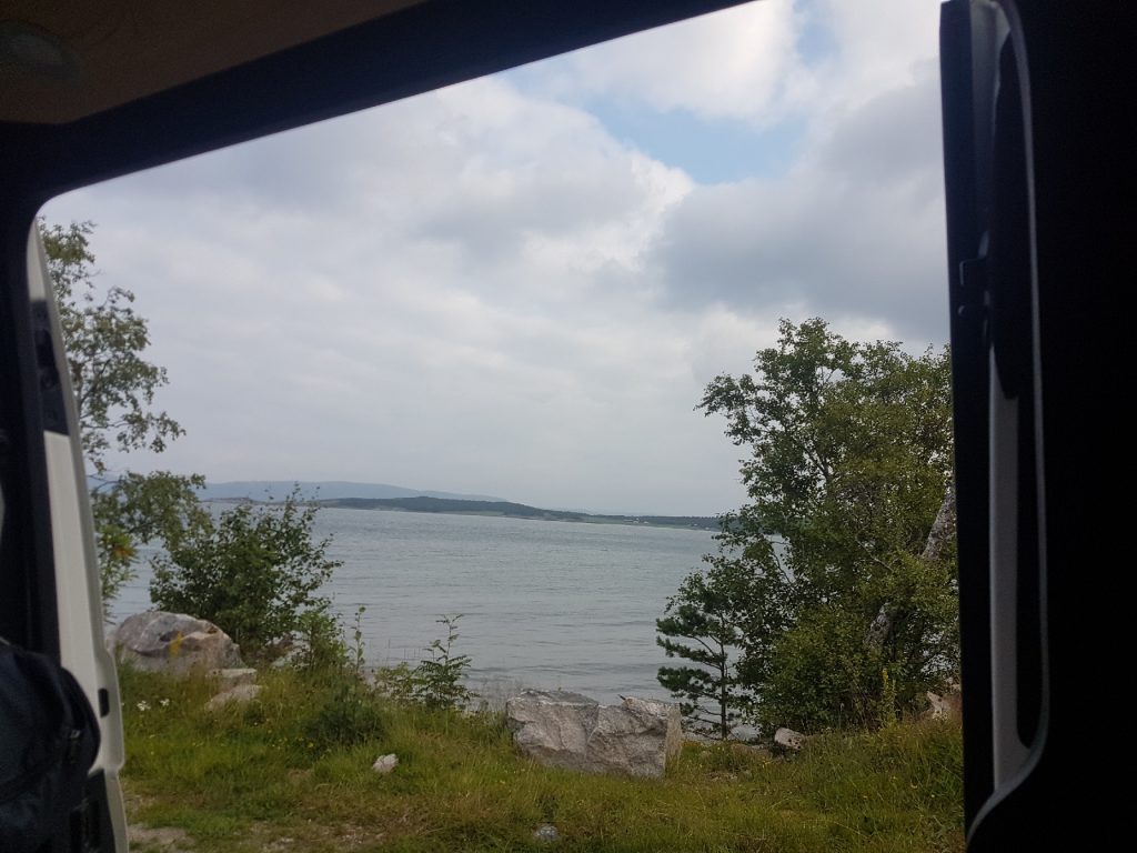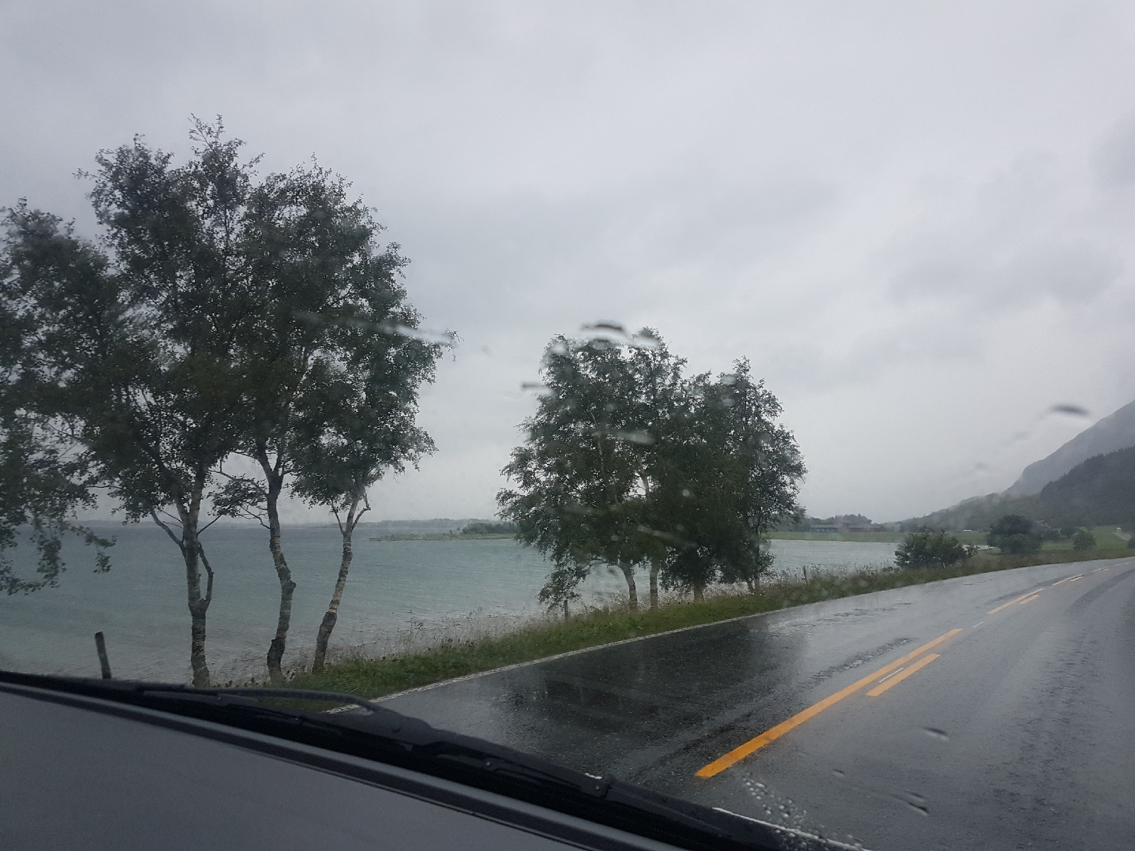 Wir sind nun trotzdem an die 250 km gefahren, es ist kurz nach 21 Uhr und wir sind langsam auf Stellplatzsuche für die Nacht. Das Regengebiet bleibt wohl auch morgen noch, daher haben wir schon geplant, dass wir morgen wohl viel Autobahn fahren werden. Da ist es zwar nicht schön, aber wir kommen schneller voran. Die Landschaftsroute bringt uns so ja leider auch nichts. Auf den Lofoten sieht das Wetter wohl momentan besser aus, also drückt uns die Daumen! 🌞