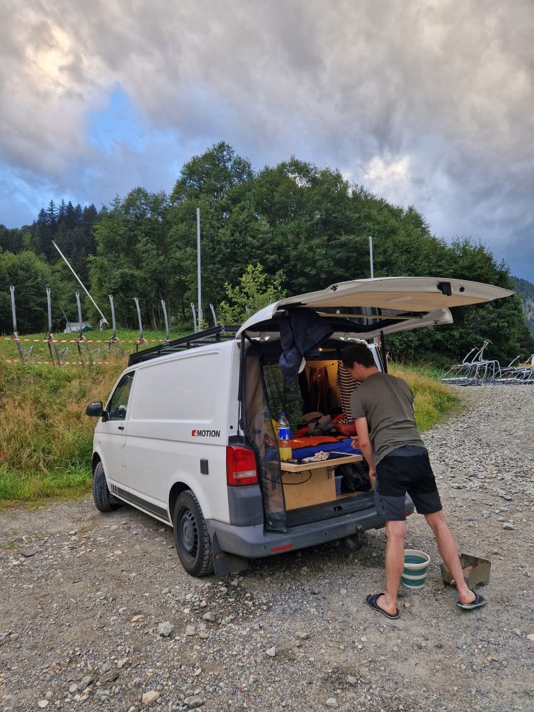 Wir steuerten einen Stellplatz in der Nähe des hohen Berges an. Am frühen Nachmittag hatten wir einen Parkplatz eines Skilifts erreicht, der zu dieser Jahreszeit natürlich nicht in Benutzung ist. Lediglich ein paar Wanderer hatten ihre Autos dort abgestellt und auch zwei andere Camper hatten sich schon dort eingerichtet.