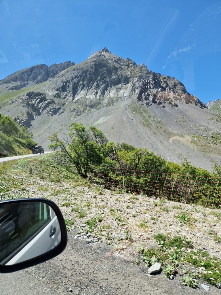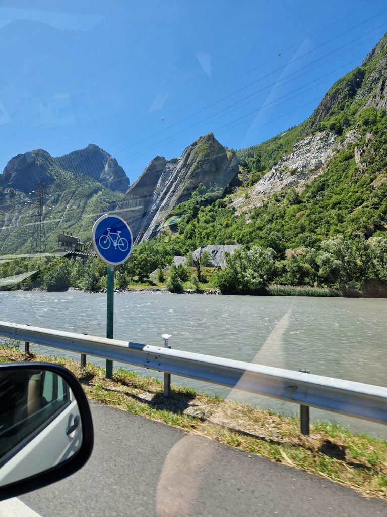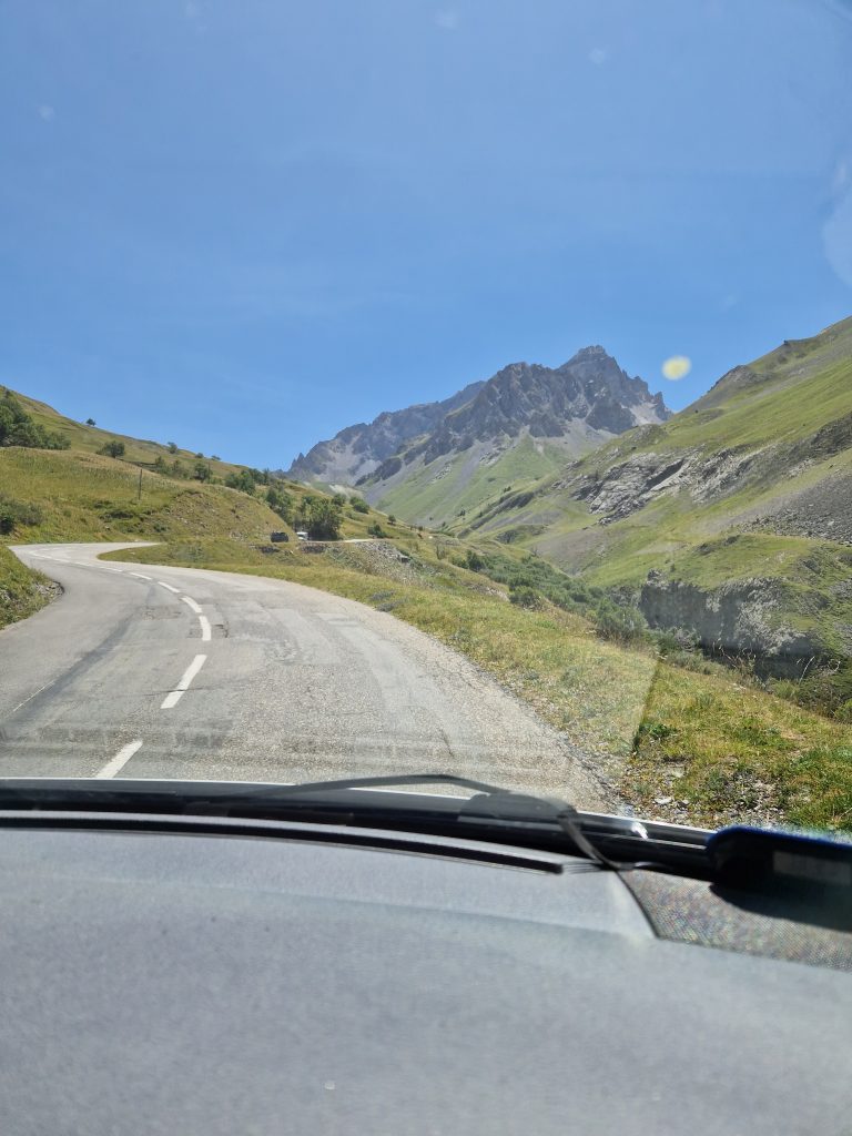 Und wieder ging es auf die Straßen, beziehungsweise genauer gesagt auf die Route des Grands Alpes. Das Wetter war gut! Juhu! Endlich gab es da mal nichts zu meckern.. blauer Himmel, Sonnenschein und angenehme Temperaturen. Wir sind morgens vom Wanderparkplatz ziemlich direkt losgefahren und haben unterwegs wieder die Aussicht genossen. Immer wieder sind uns die vielen Namen auf der Straße aufgefallen. Wir sind anscheinend auf der Tour de France-Strecke unterwegs. Tatsächlich konnte man heute teilweise denken, dass wir zwischen die Tour de France Fahrer geraten sind. Es waren unglaublich viele Radfahrer auf der Stecke unterwegs. Das kam mir übrigens sehr zu Gute! 😀 Dank der Radfahrer waren wir häufig zum Langsamfahren gezwungen. Die Straße ist so kurvig, dass man nur an einigen Stellen überholen kann. Häufig muss man aus Sicherheitsgründen dahinter bleiben.