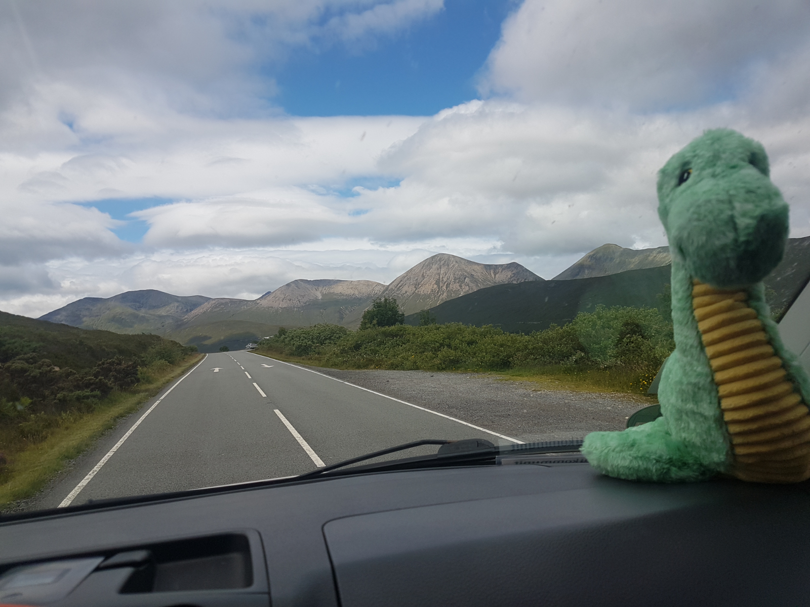 Unser heutiges Ziel ist die Isle of Skye, die gute 2 Stunden Autofahrt entfernt liegt. Auf der Fahrt wechselten sich Wolken, Regen aber auch kurzzeitig blauer Himmel ab! Die Landschaft war wie immer.. grün, und wunderschön! 😉 Gegen kurz nach 12 sind wir dann über eine Brücke auf die Insel gefahren. Keine Fähre! ✌