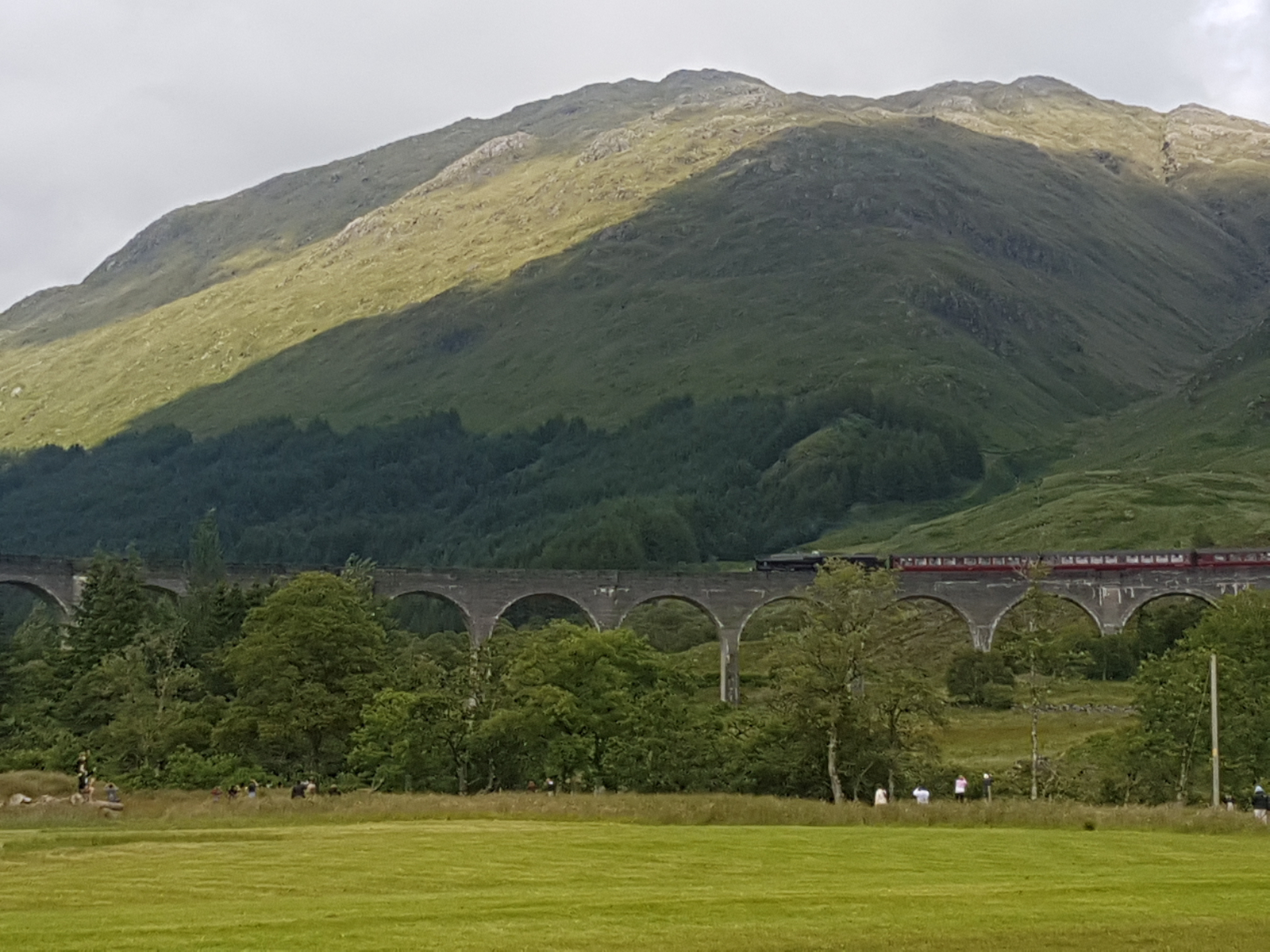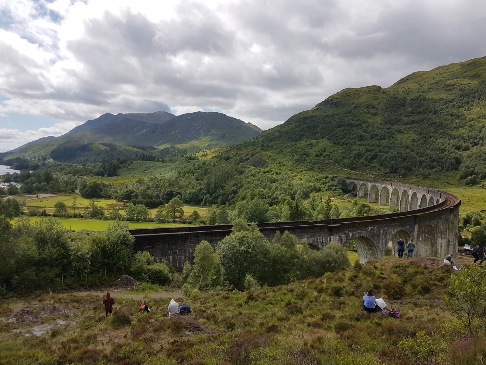 Nach einer ruhigen Nacht (ohne Midges! 😁) sind wir auf der Isle of Skye relativ früh gegen 10 Uhr losgefahren. Das heutige Ziel ist besonders magisch.. Wir wollen Richtung Fort William zum Glenfinnan Viadukt. Dort fährt viermal am Tag der Hogwarts Express entlang!