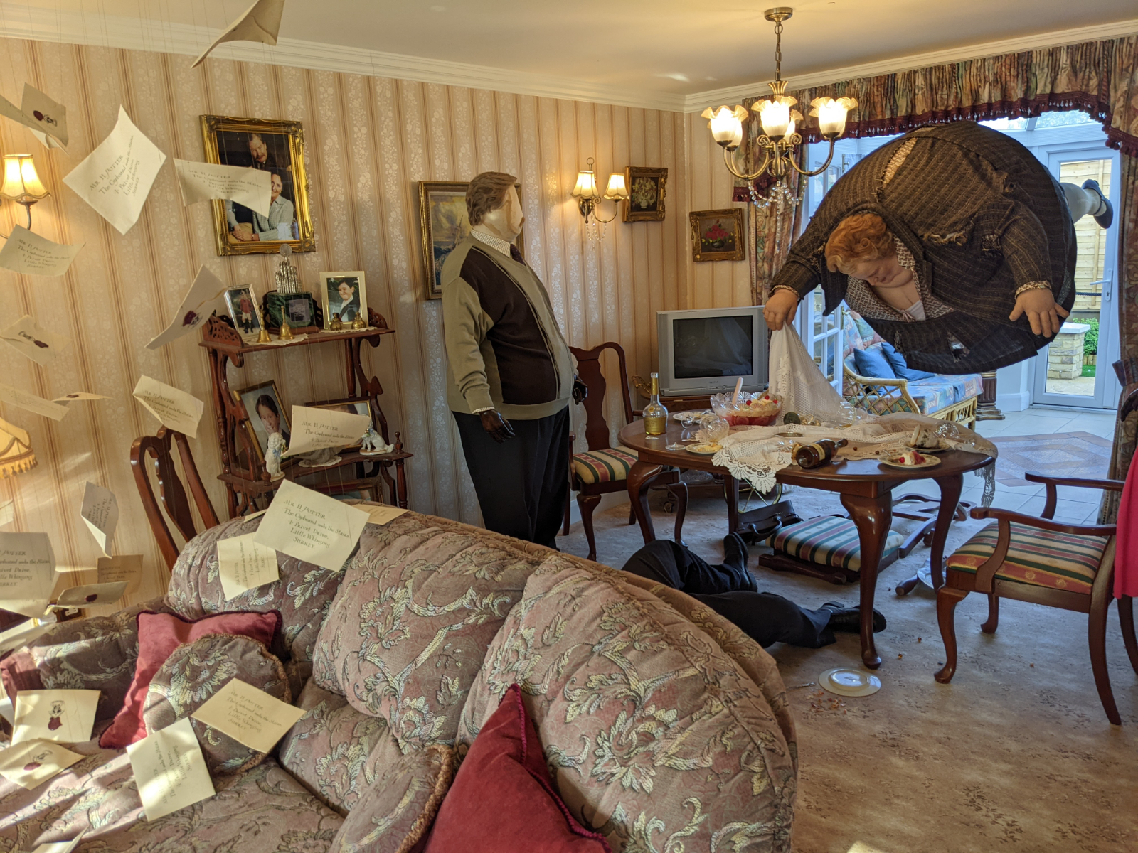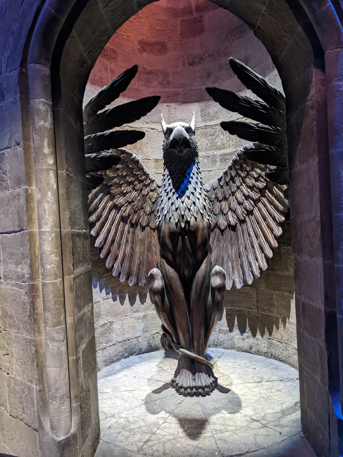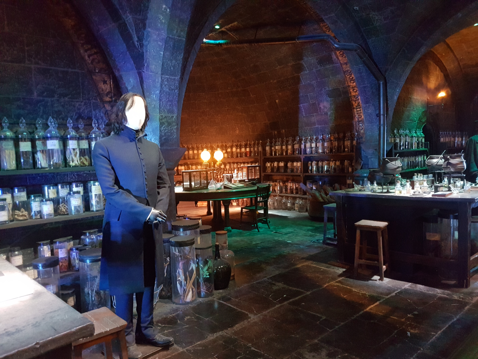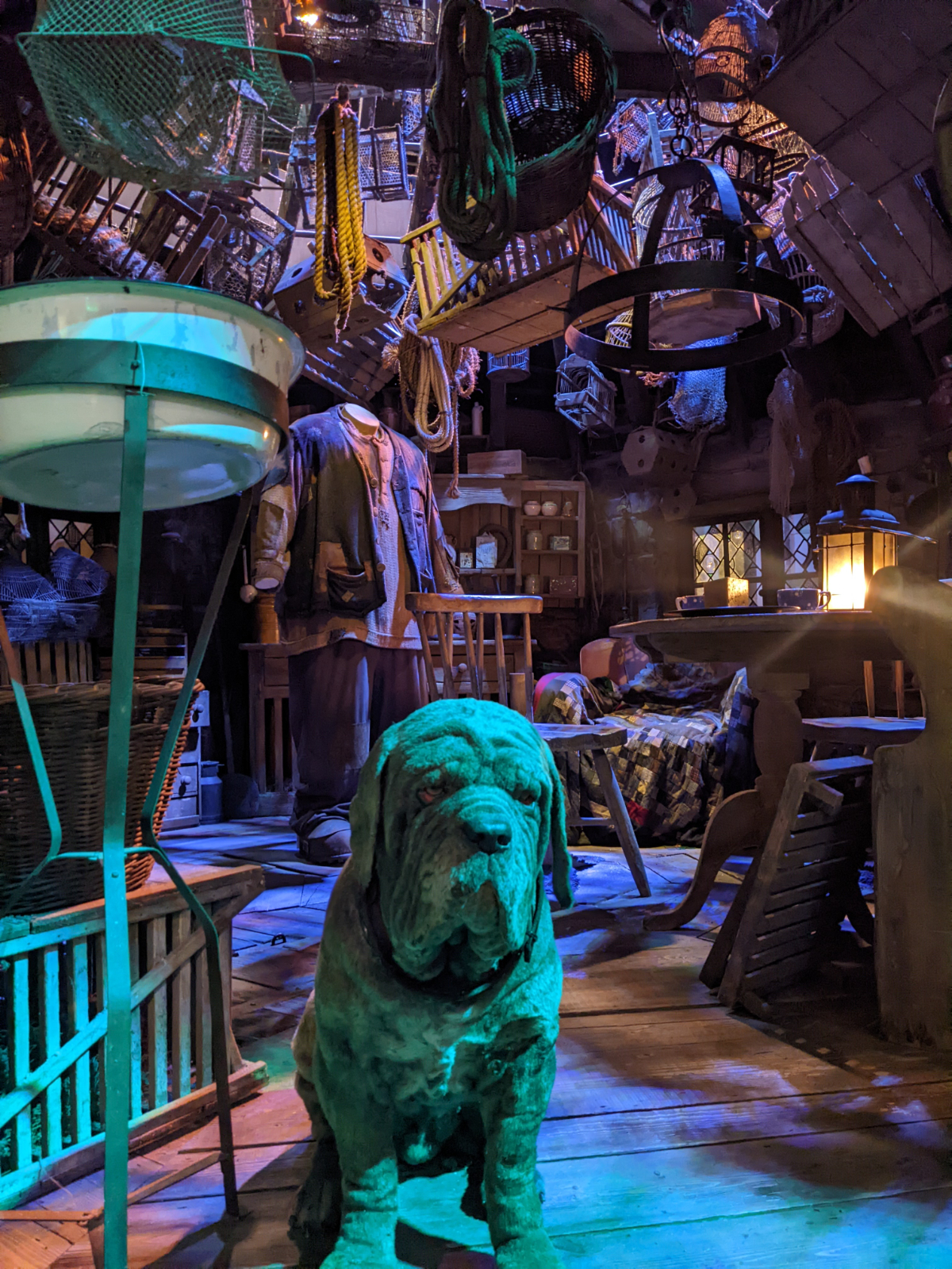 Der Rundgang führte uns weiter an vielen verschiedenen Szenen/Kulissen vorbei. Neben Schlafsaal, Gemeinschaftsraum, Zaubertränke-Klassenraum und Dumbledores Büro sah und lernte man viel über die Besen und das Fliegen, die tierischen Schauspieler und die Gemälde. Dies sind lediglich Beispiele… man wurde quasi erschlagen von Gegenständen, die man allesamt wiedererkannte. Leider ging es mir nicht gerade besser und somit sank meine Laune in den Keller. Jeder Schritt und jeder Atemzug tat irgendwie weh und ich konnte mir überhaupt nicht erklären weshalb. Aber aufgeben ging halt gerade auch nicht! Wir schlenderten durch den Verbotenen Wald, schauten uns die riesigen Spinnen an und begrüßten Seidenschnabel. Sven konnte diese Momente noch halbwegs genießen, während ich nur noch an den Sachen vorbeiging und kaum hinschaute.