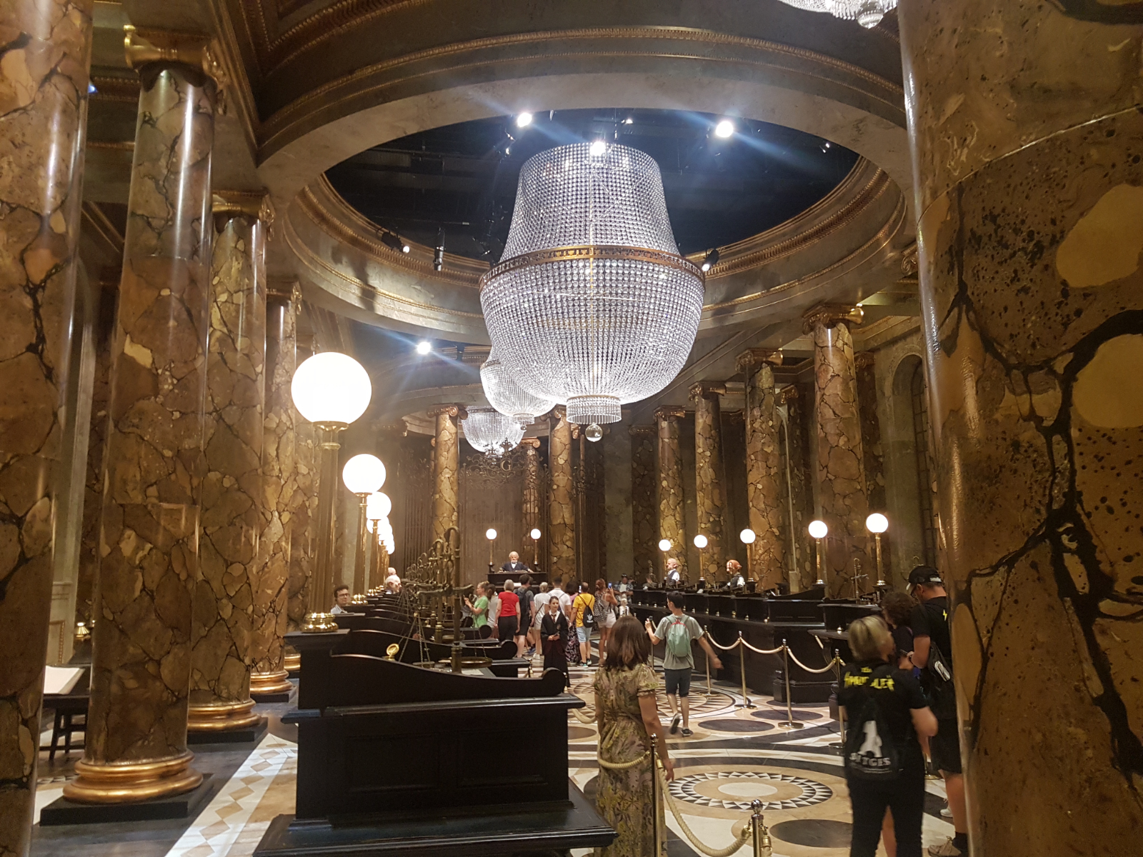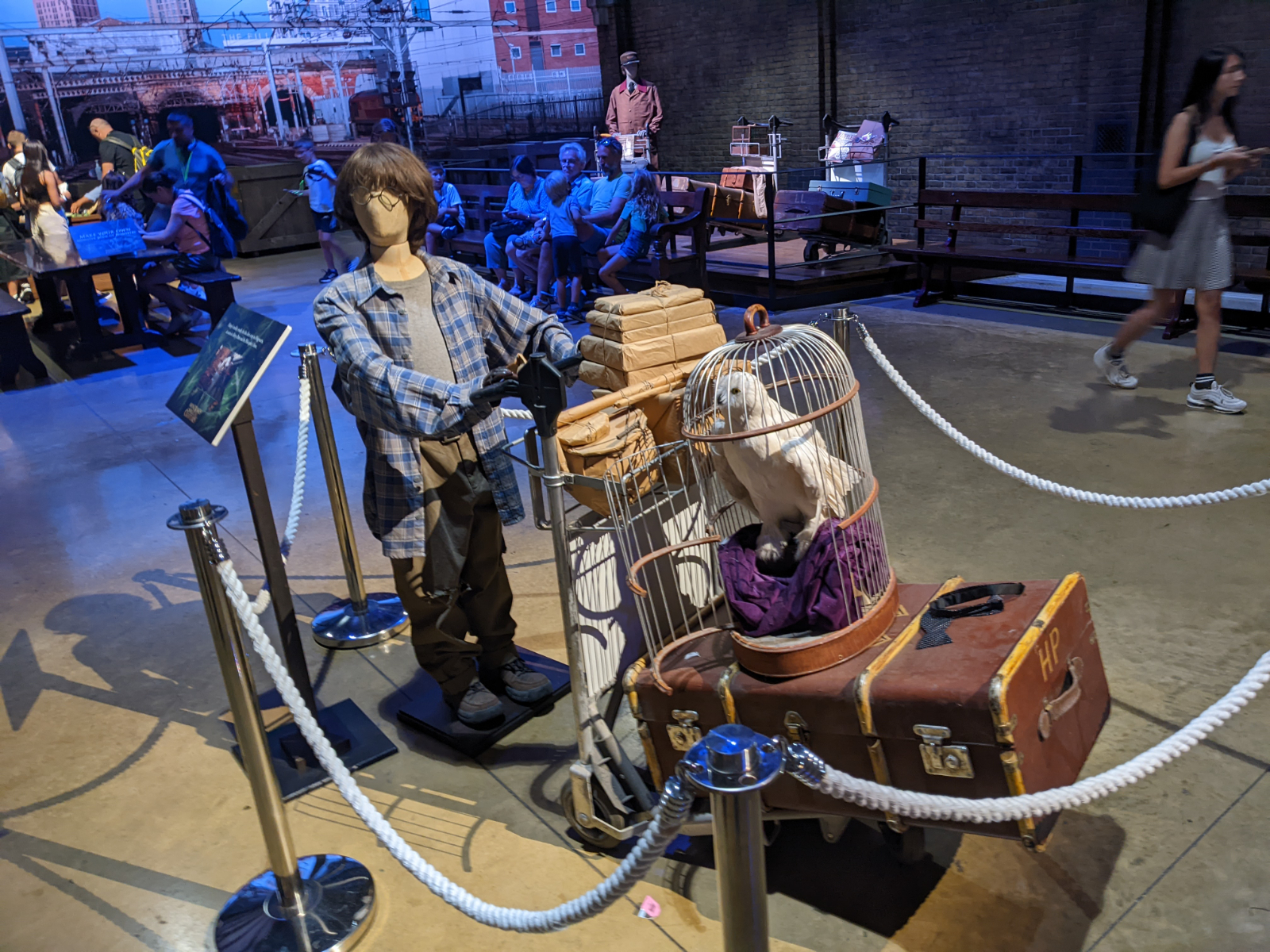 Das beste zu Beginn.. Es war klimatisiert! 😎 Sehr, sehr angenehm bei diesen Temperaturen draußen! Wir starteten nachdem wir uns noch einen Audio-Guide geholt hatten in einem großen Saal mit riesigem Drachenmodell über uns! Überall an der Wand waren Harry und Co zu sehen. Dann begann die „Tour“. Zunächst ging es in einen Bereich, in dem die Kinoplakate und deren Entwicklung zu bestaunen waren. Dann startete man in einem kleinen „Kino“, in dem ein kurzer Film gezeigt wurde, in dem die Schauspieler/Produzenten/Mitarbeiter hinter den Kulissen etc. zu Wort kamen und einen kleinen Einblick in die Arbeiten gaben.