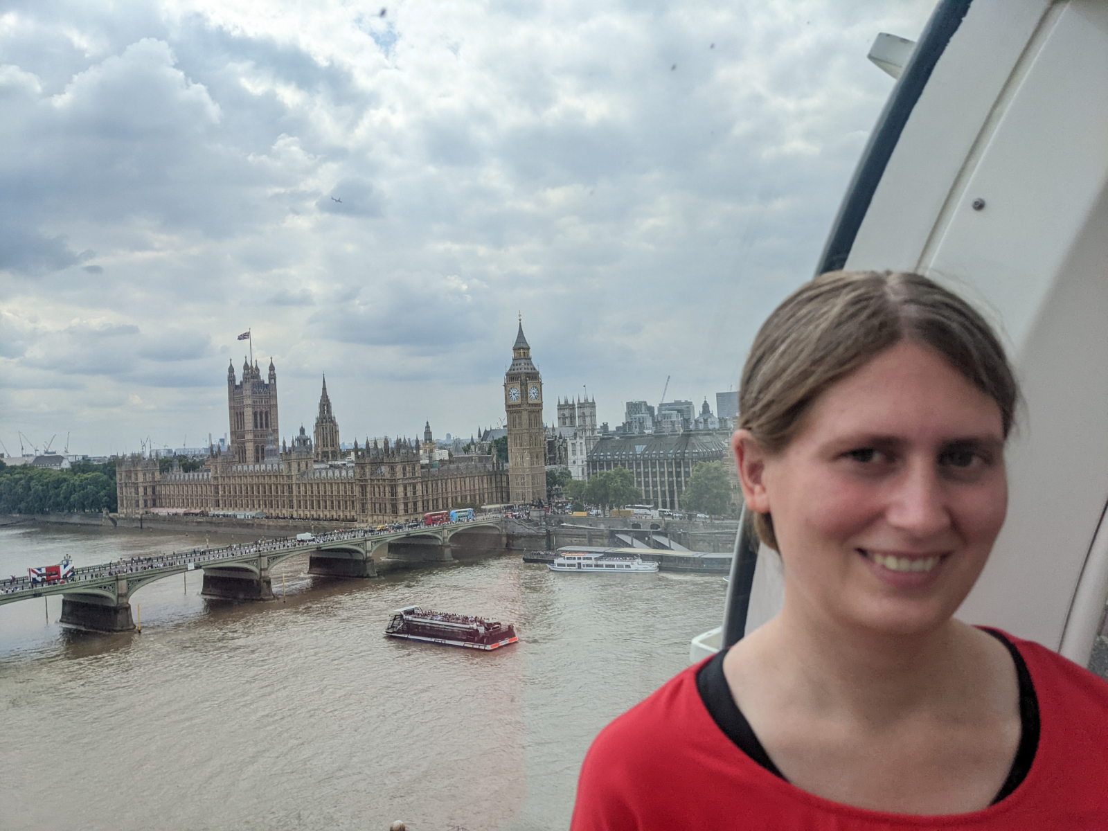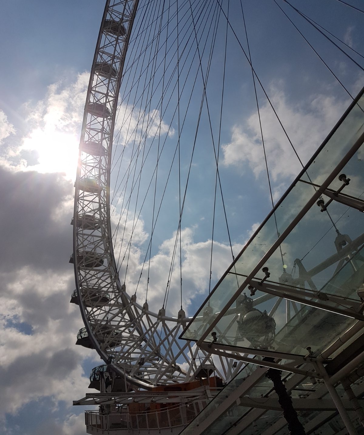 Dank des Staus kamen wir tatsächlich erst gegen kurz nach 13 Uhr an der Station „Waterloo“ an und sind dementsprechend direkt zum London Eye gegangen. „Endlich mal wieder Bewegung!“, jubelte die Fitnessuhr. 😂