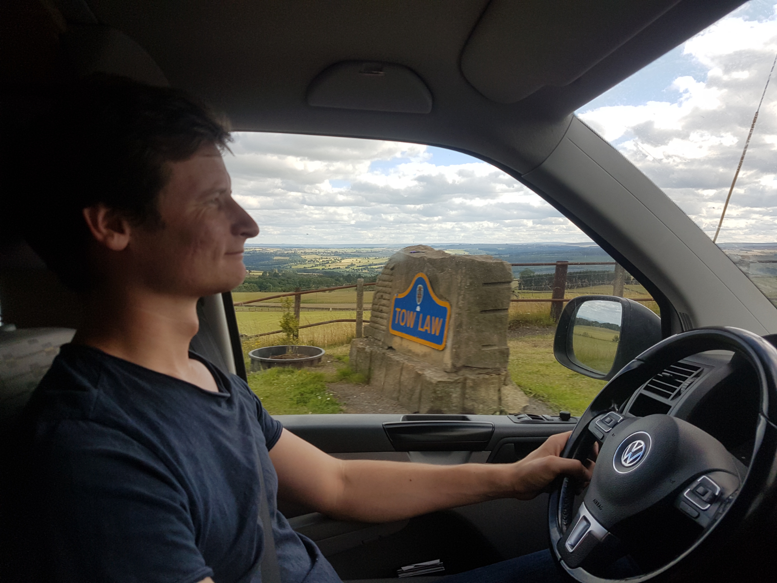 Gegen 10 Uhr haben wir uns dann letztendlich auf den Weg gemacht. Nun, wo wir London fürs erste den Rücken gekehrt haben, waren wir hochmotiviert, möglichst flott nach Schottland zu kommen. Sven fühlt sich im Linksverkehr immer wohler, das ist auch gut so, denn auf den Autobahnen kommt es vor, dass „Ich bleibe einfach ganz links“ gleichbedeutend ist mit „ich fahre auf der 4. von 6 Spuren“. Zum Glück stresst Sven das nicht weiter. Nur nach längeren Pausen muss ich ab und zu hektisch rufen:“ Links, links, links!“, da sich manchmal in solchen Situationen der Automatismus durchsetzt.