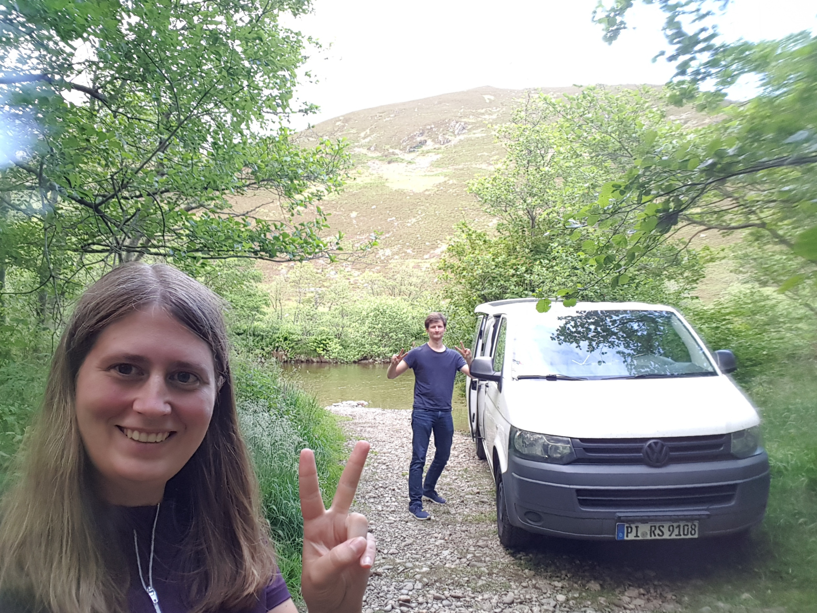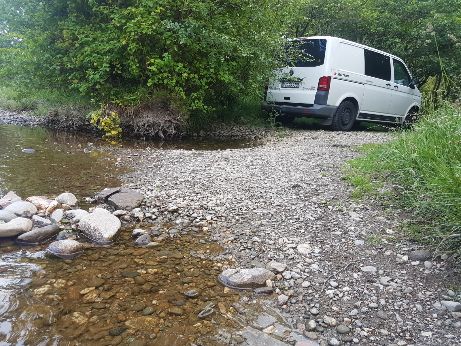 Nach der Stirling Castle wollten wir uns langsam einen Schlafplatz suchen und nun komme ich zum Highlight des Tages! 😍 Bei Park4night haben wir einen Offroad-Stellplatz in nördlicher Richtung gefunden, den wir angesteuert haben. Fragt bloß nicht genauer, wo wir hier sind… Aber es ist unglaublich schön! Wir stehen an einem kleinen Fluss, umgeben von grün.. in Sichtweite keine Zivilisation.. herrlich! Die Drohne war bereits wieder in action! 🤩 Und auch der Frühaufsteher ist glücklich, weil wir sogar halbwegs gutes Internet haben. Das Ausschlafen morgen scheint gesichert! 😏