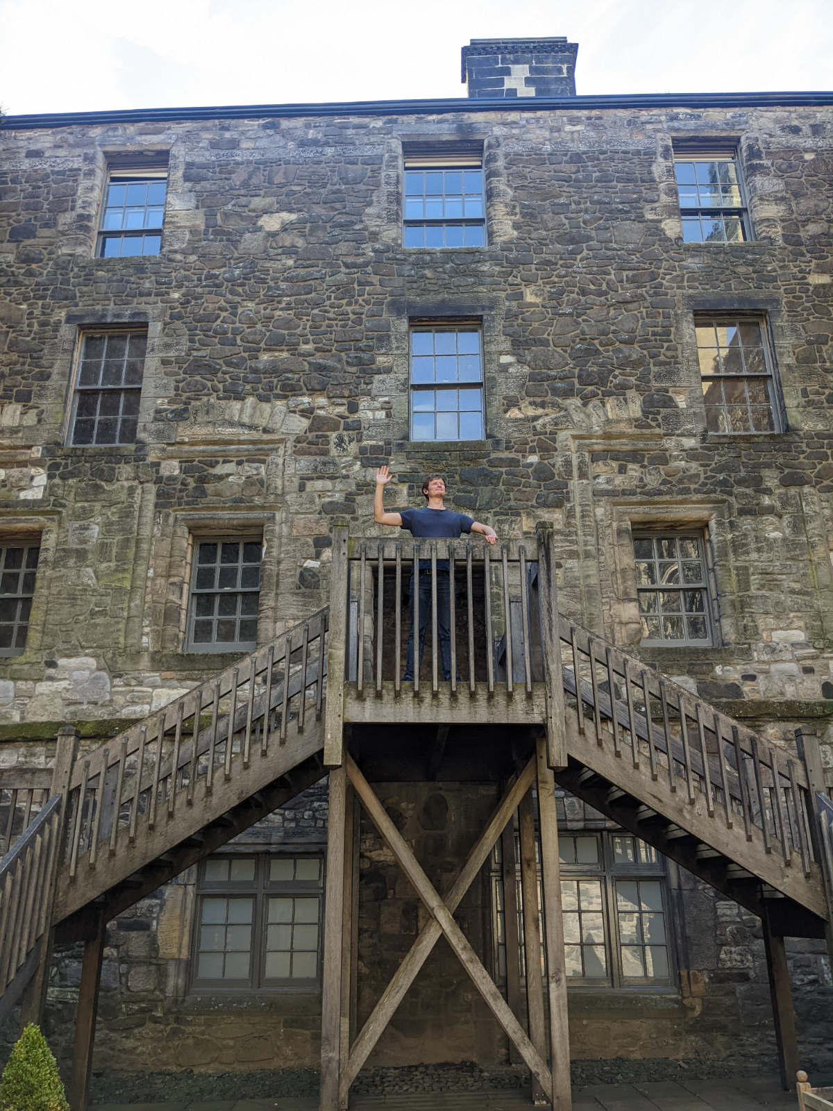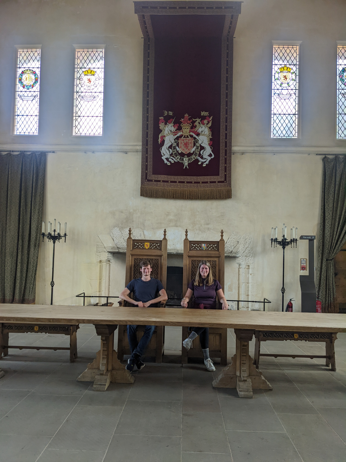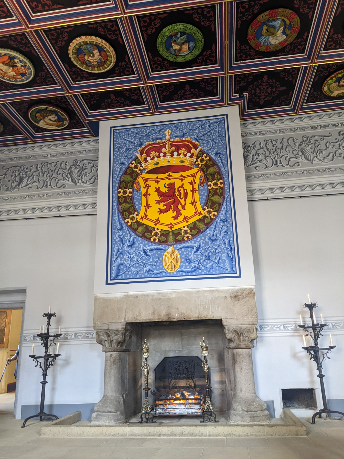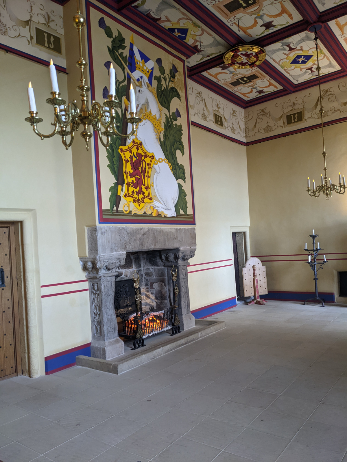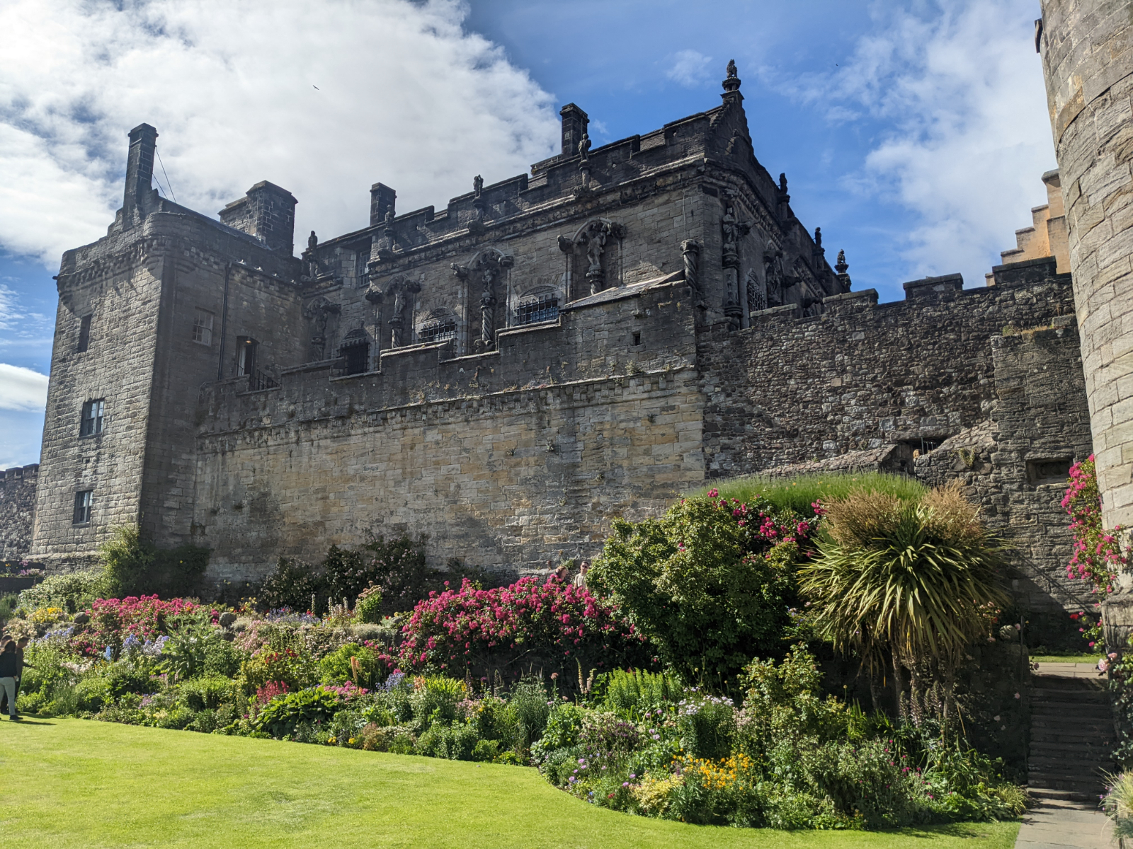 Gegen 14:30 Uhr waren wir dann zurück bei Basti und steuerten unser nächstes Ziel an. Wir wollten schließlich auch nochmal eine Castle von innen sehen! Stirling war deswegen unser nächstes Ziel. Inklusive eines kurzen Supermarktstopps fürs Brotauffüllen waren wir nach ca. 2 Stunden Fahrt in dem kleinen Städtchen angekommen. Hier gibt es ein wirklich tolles mittelalterliches Schloss zu sehen! Die Gebäude sind restauriert worden, sodass man wirklich einen Eindruck davon erhält, wie es hier vor einigen Jahrhunderten ausgesehen haben könnte. Ein Audio-Guide (auf deutsch) sorgte dafür, dass wir viele Infos zu den Gebäuden und hier herrschenden König:innen bekamen. Dadurch war die Tour durch das Schloss wirklich interessant!