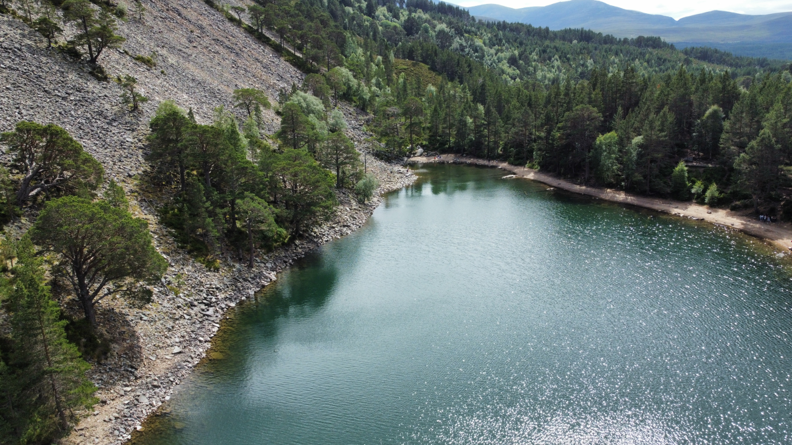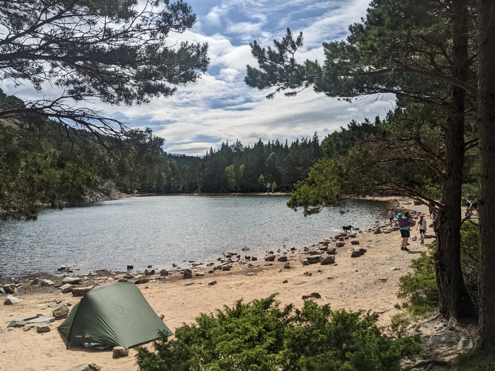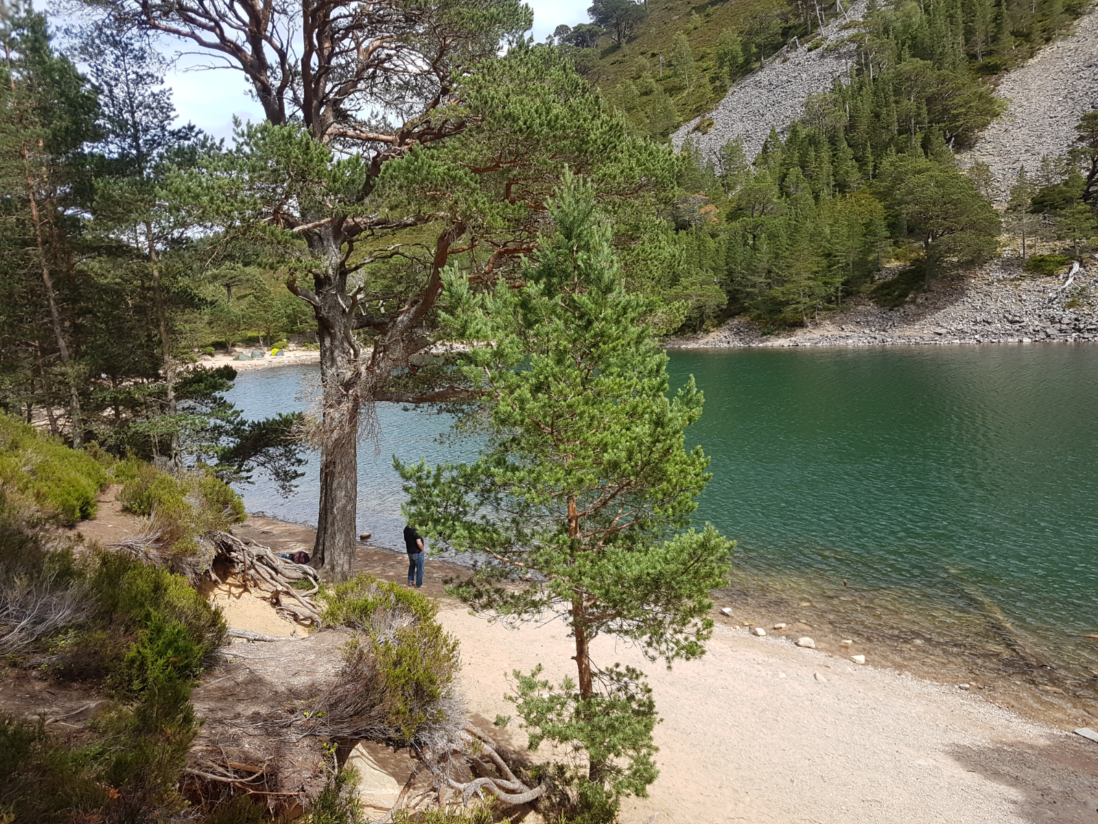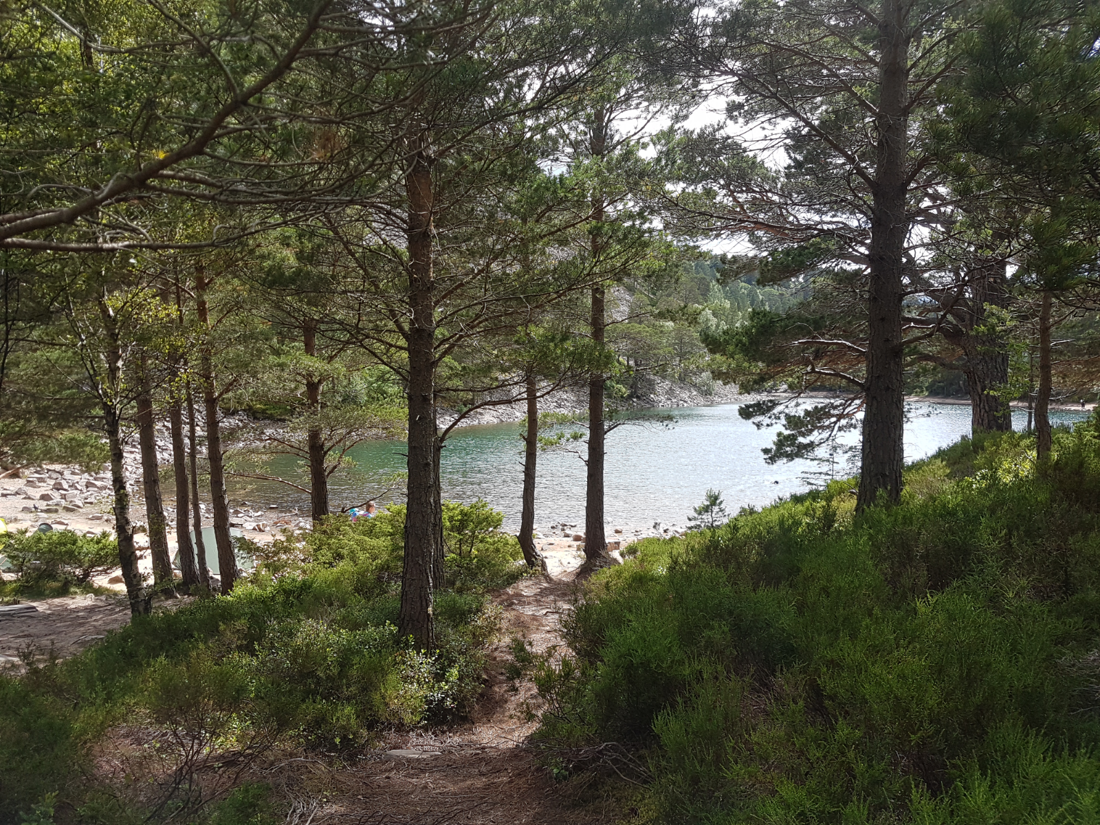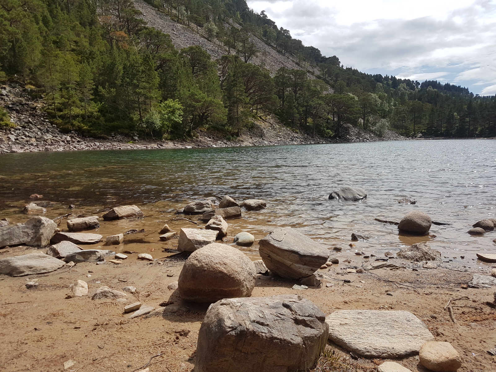 Gegen 13 Uhr kamen wir am Rentier-Center in Glenmore an, von dem aus die Route zum See „An Lochan Uaine“ startete. Hinter diesem unaussprechlichen Namen steckt ein kleiner Bergsee, der für sein grünes Wasser bekannt ist. Es führt ein Rundweg zum See, den wir in Angriff nehmen wollten. Die erste Hälfte des Weges zum See hin führte teilweise recht steil bergauf, sodass wir in der Sonne doch ins Schwitzen gerieten. Der Weg war allerdings schön zu laufen, etwas „abenteuerlich“ und hat uns viel Spaß gebracht. Ungefähr 50 Minuten dauerte es bis wir am „Grünen See“ ankamen. Der Rückweg führte dann leider nur einen Schotterweg entlang und war nach einer halben Stunde geschafft. Der See selbst ist ganz schön gelegen, aber es war jetzt kein absolutes Highlight 😉