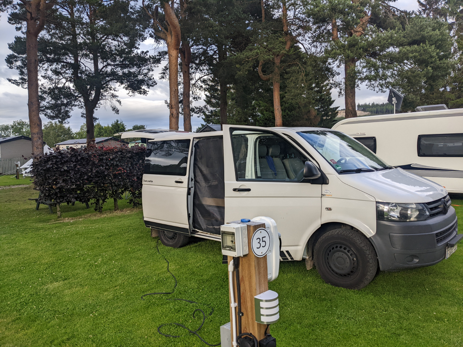 Wasser ist übrigens auch noch so ein Thema… Wir haben unseren tollen Sodastream mit dabei, damit wir keine Plastikflaschen kaufen müssen und trotzdem immer gesprudeltes Wasser trinken können. Das hat auch die ersten Tage wunderbar funktioniert! Seit dem letzten Campingplatz haben wir aber nun schottisches Wasser an Bord. Leider ist das, wie in vielen Ländern, mit Chlor versetzt. Als Trinkwasser kann ich damit gar nichts anfangen, sodass ich momentan wieder auf gekaufte Flaschen umgestiegen bin… Sven hält allerdings tapfer durch. Mit ausreichend Sirupzusatz kann man den Chlorgeschmack wohl übertünchen! 🤣